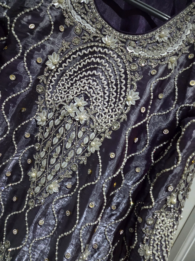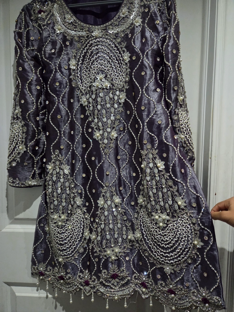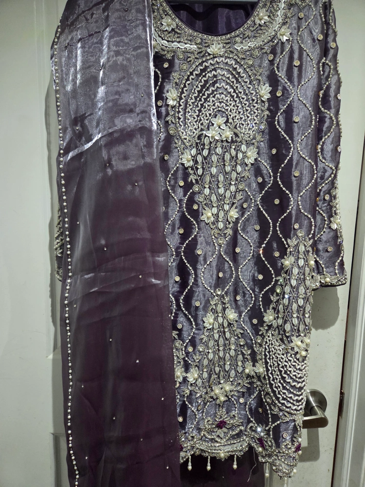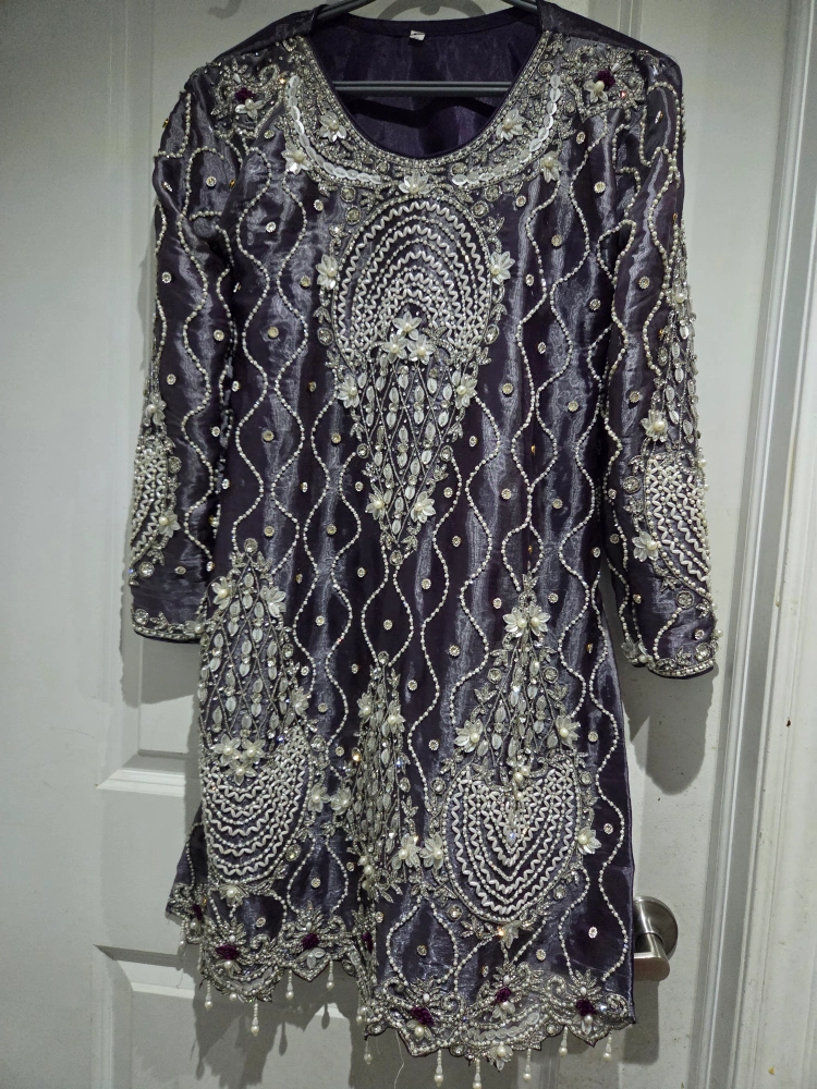 Ready to Wear - Kurti with Dupatta Available in 2 Elegant Colors: Purple & Sea Green Size: XL (Comfortable & Stylish Fit) Heavy Hand Embroidery with Stones & Pearl Work Perfect for Party, Wedding & Special Occasions used like new -just 1 day High-Quality Stitched Dress