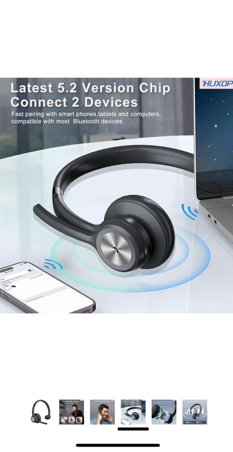 Looking to sell this HUXOP Bluetooth 5.2 headset in black! It features 40mm dynamic drivers for great sound quality. It's ultra-lightweight and has a comfortable design for all-day wearing. It also has an adjustable headband and a 270° rotatable microphone