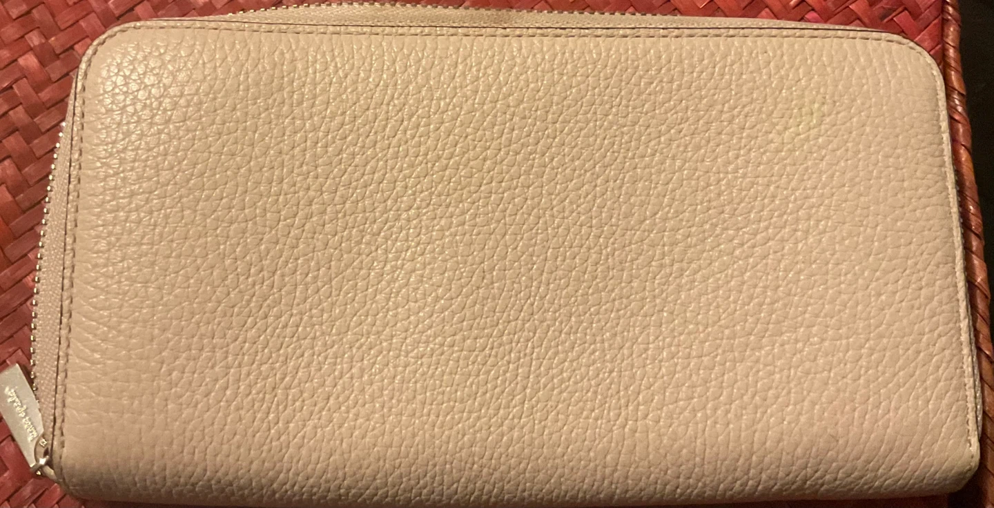 Selling a Kate Spade zip around wallet. It's in great condition and has lots of space for cards and cash. The wallet is made of leather and has a zip around closure.