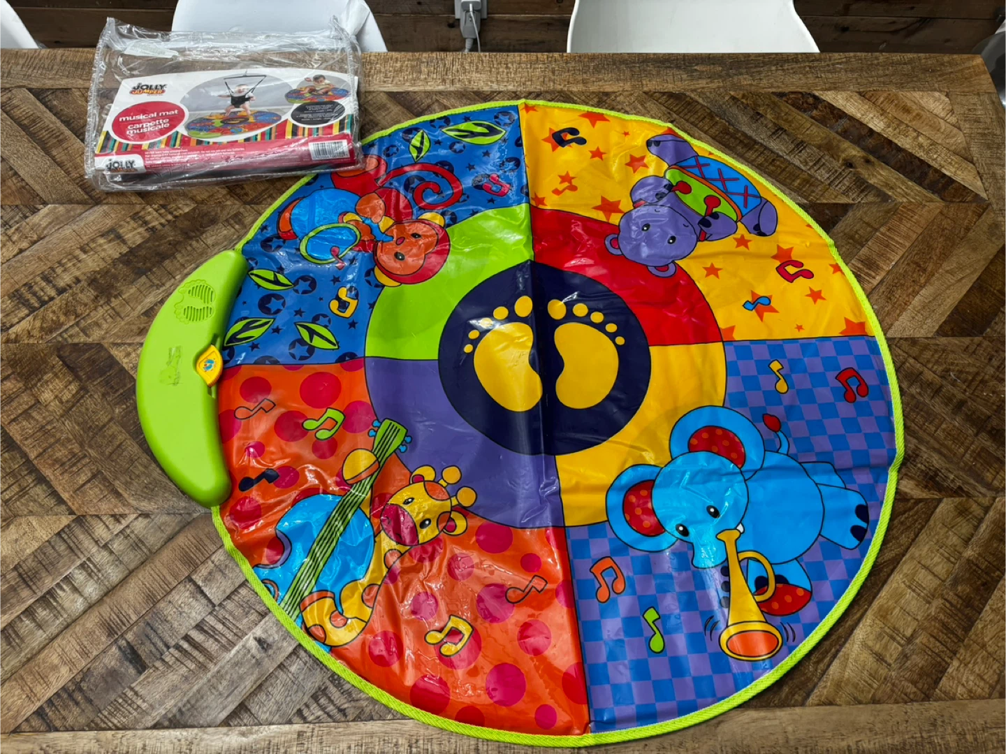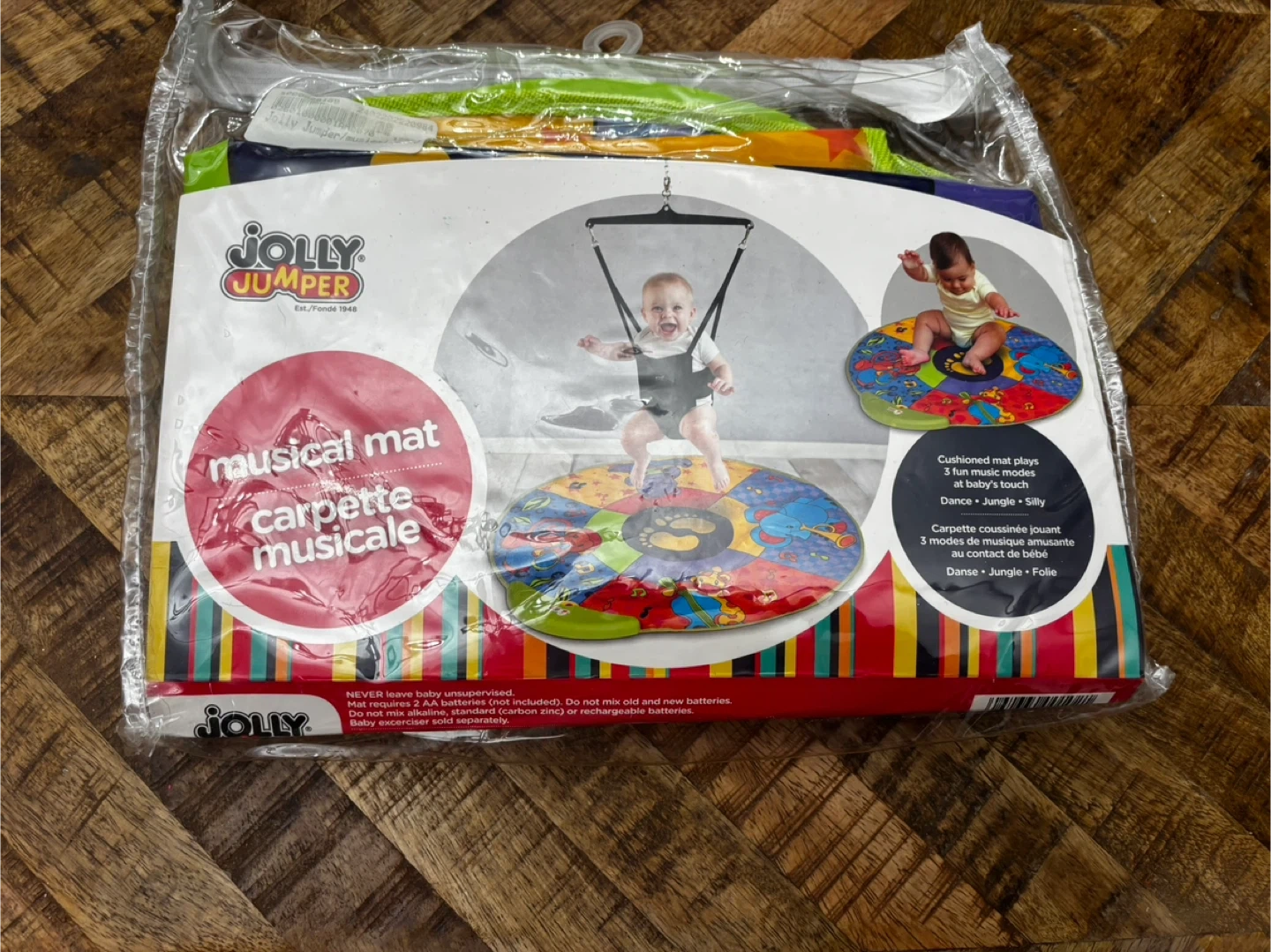 Jolly Jumper musical mat still in its original packaging! The cushioned mat plays music at baby's touch. It has 3 modes: Dance, Jungle and Silly. From a pet friendly, smoke free home. Porch Pickup Only.