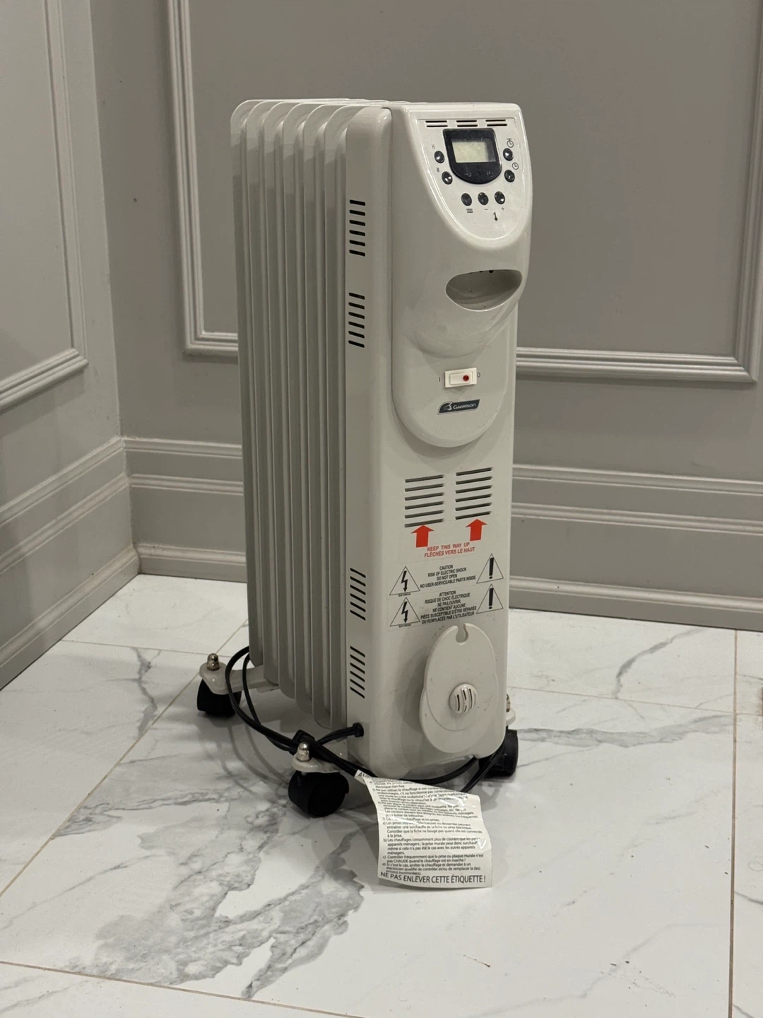 Portable eclectic radiator heater is perfect for keeping any room warm and cozy! It features an adjustable thermostat and multiple heat settings to customize your comfort level.