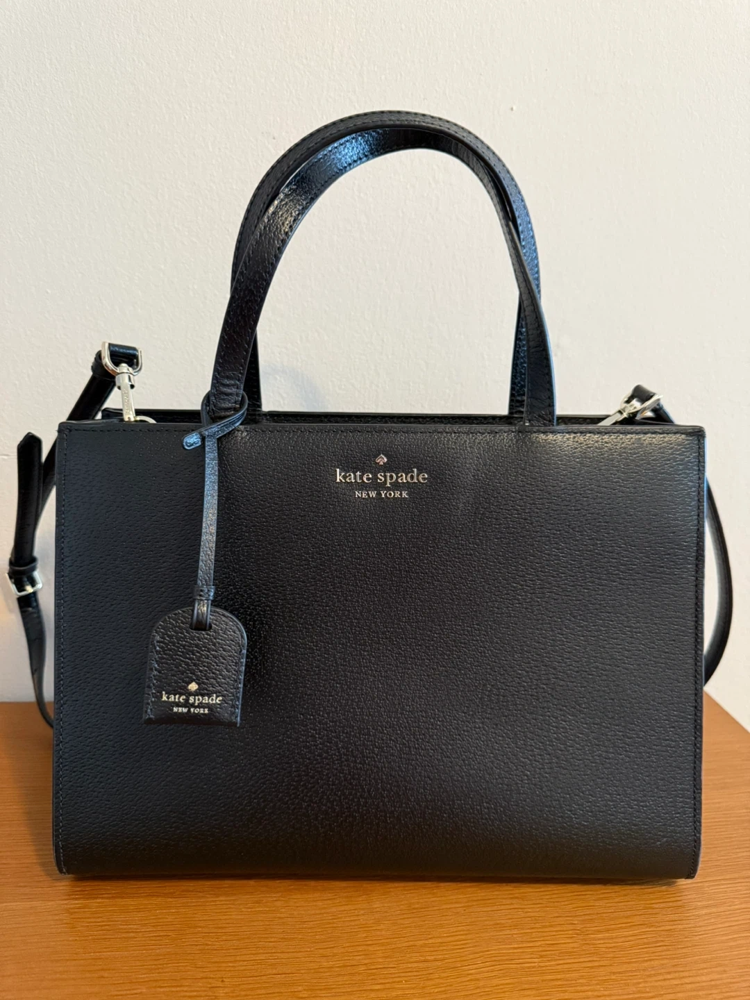 This is a stylish black leather tote bag from Kate Spade New York. It's Brand New and ready for a new home! Perfect for carrying your essentials in style.