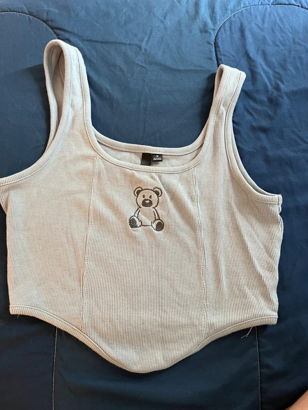 Buy & SellTopTop$3Selling a cute Fat Face ribbed tank top! It's a size medium and features an adorable teddy bear design. Perfect for a casual and comfy lookConditionGoodSizeMBrandFat FaceWHERE TO MEET230 king st eastView MapSELLERverifiedMishelKing East16511 reviews0 chats·2 favorites·7 views