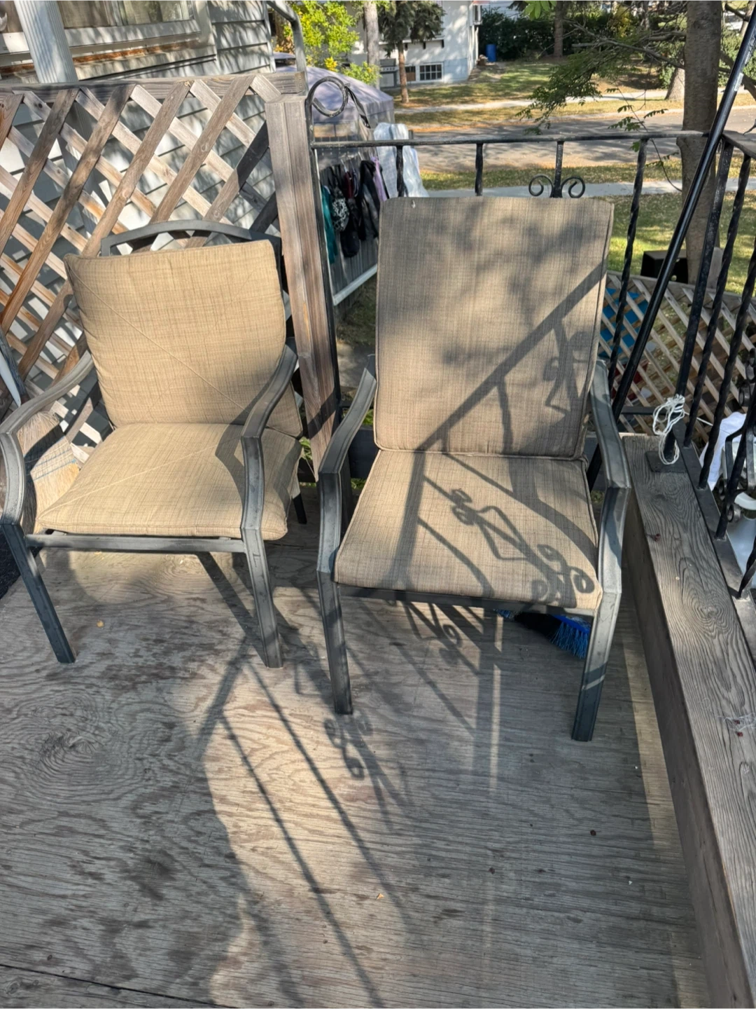 Selling a set of two outdoor patio chairs! They're in great condition and ready to add some comfy seating to your outdoor space. Perfect for relaxing on the deck or enjoying a sunny afternoon in the yard