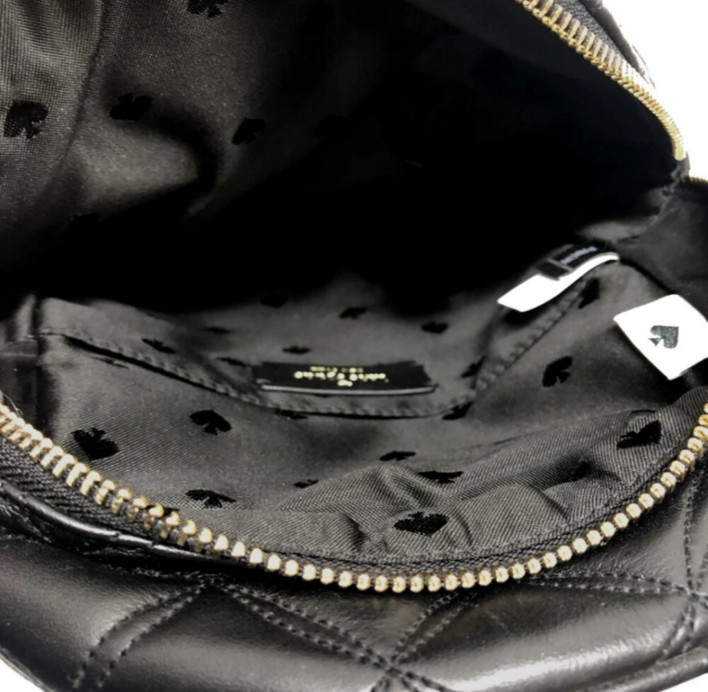 Quilted leather backpack by Kate Spade. Featuring gold zippers and hardware. Minor wear on the bottom back and light on the back. see pics . measures approximately H 9 inches x L 9 " inches W 3" inches. adjustable straps