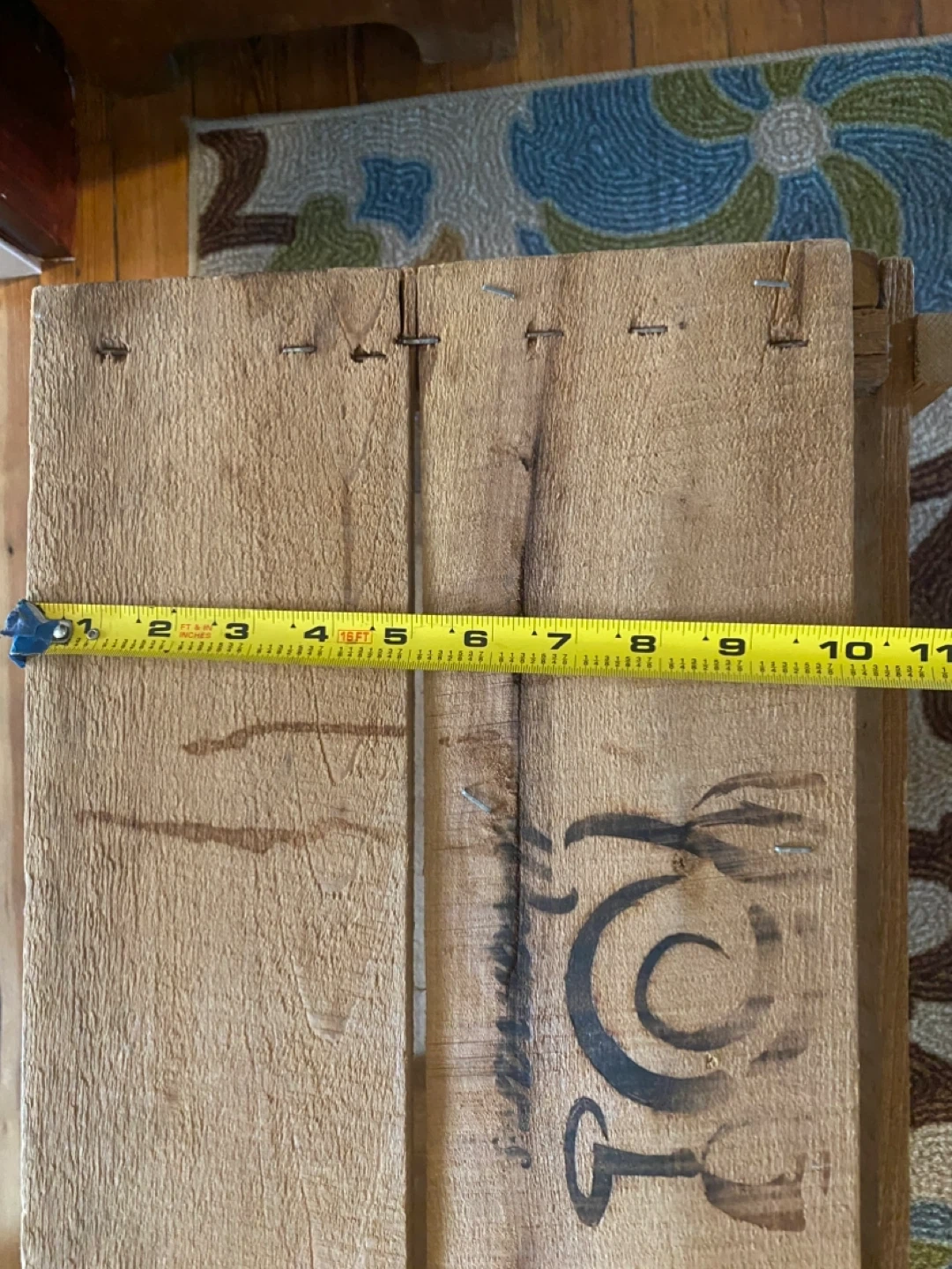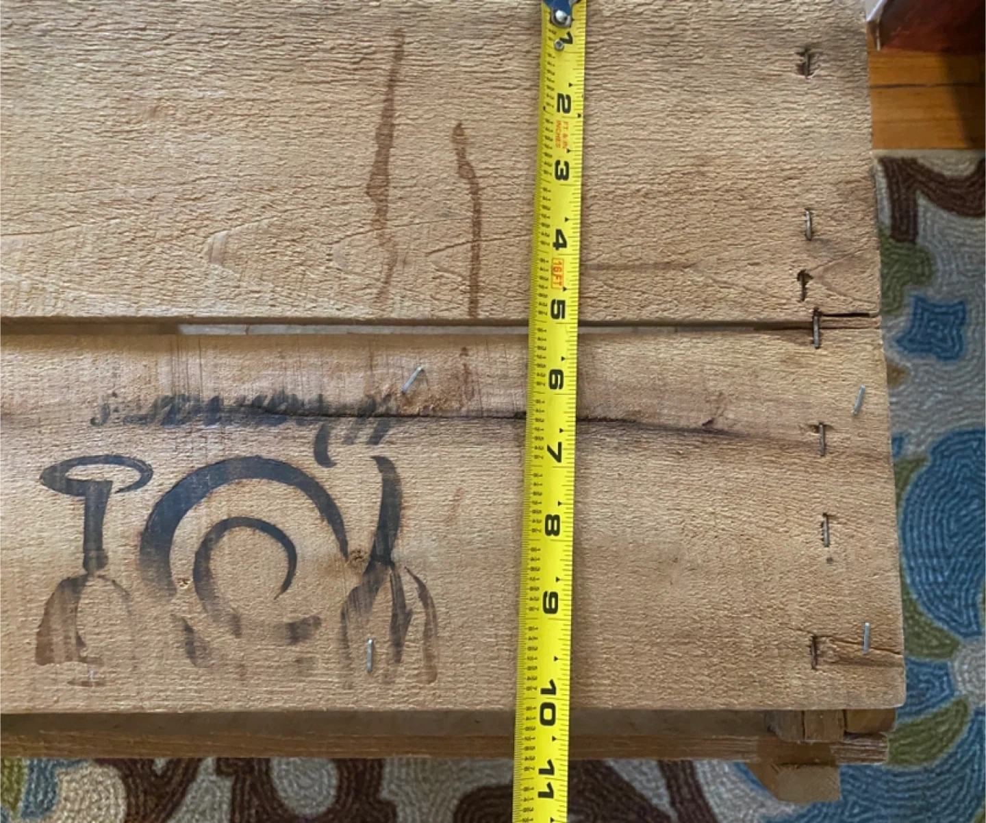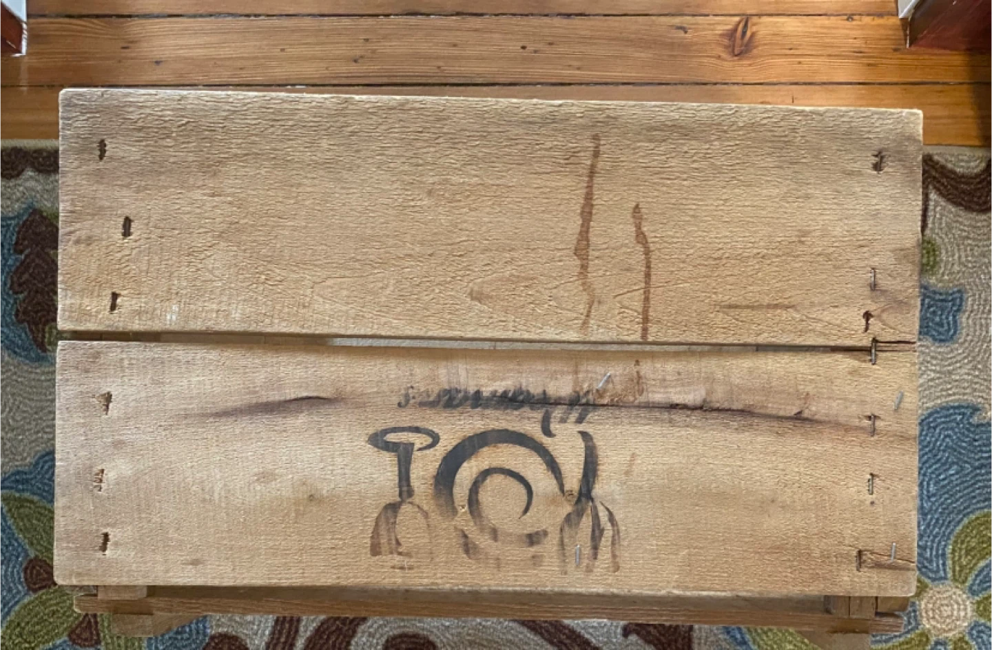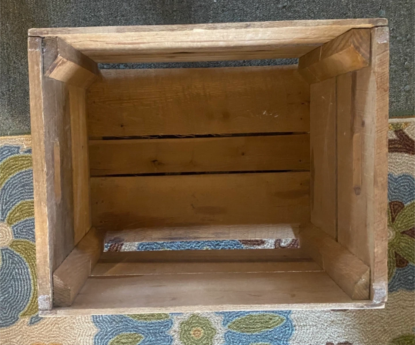 Selling a wooden crate box. Used. Held records. Sturdy crate with handles