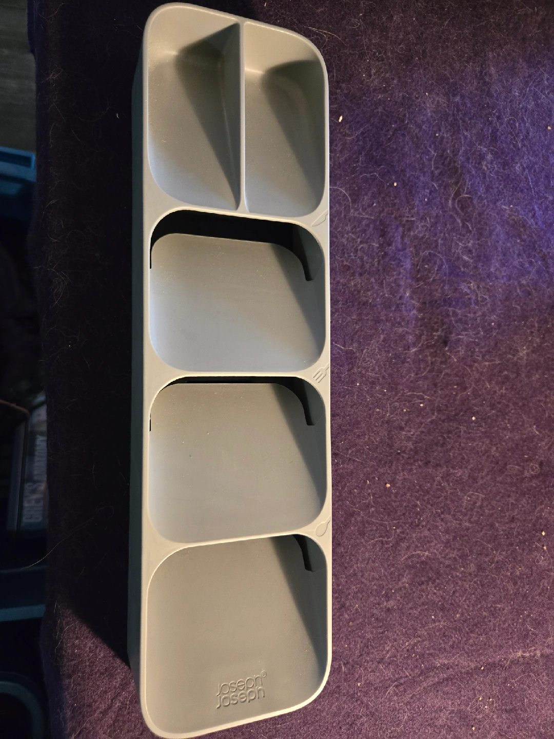 Keep your cutlery neatly organized with this Joseph Joseph DrawerStore organizer! It's in great condition and ready to help declutter your kitchen drawers. This grey cutlery organizer is perfect for maximizing space and keeping everything in its place