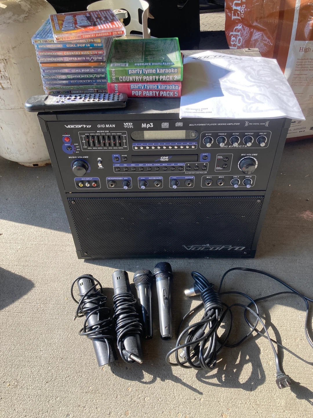Vocopro Gig Man Karaoke System w/ Mics & Party Tyme Karaoke CDs