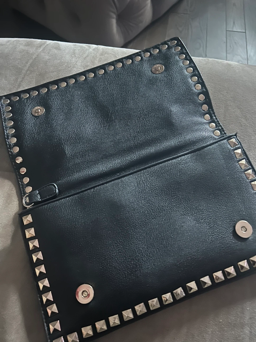 Black clutch with studded detailing. It's in great condition and has a magnetic closure. Perfect for a night out or special occasion! Pick up in High Park area or downtown