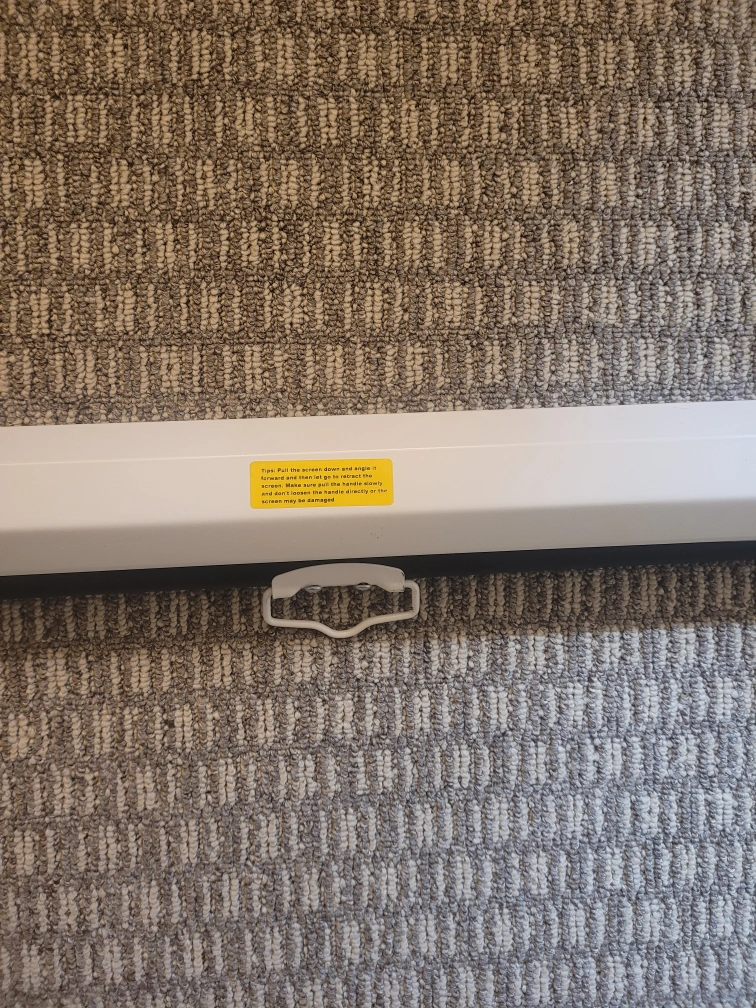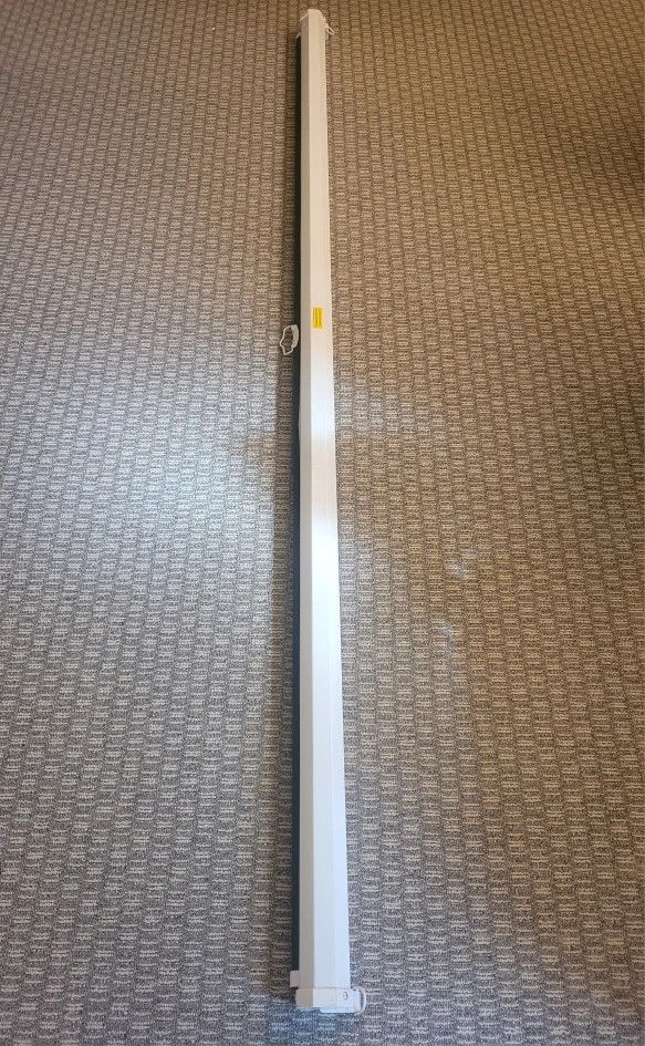 90" Long roll down projector screen with ceiling hooks and wall mounts. In great condition.