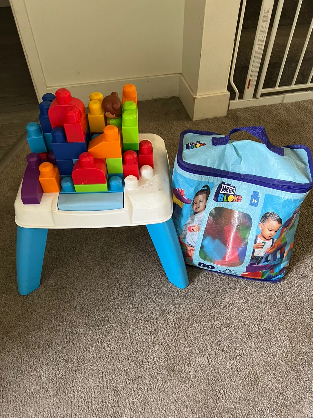 73Selling a Mega Bloks table that comes with 80 blocks! It's great for toddlers and little ones who love to build and explore. The set includes a variety of colourful blocks and a sturdy table for easy play and storage. Recommended for ages 1+.