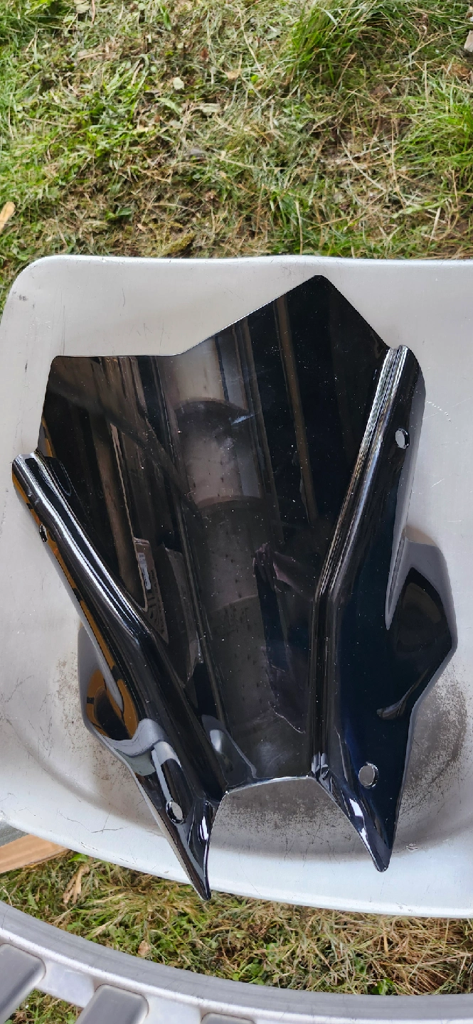 Selling a black motorcycle windshield, looks like it's for an MT-09. It measures approximately 260mm wide and 325mm tall. Perfect for all seasons!