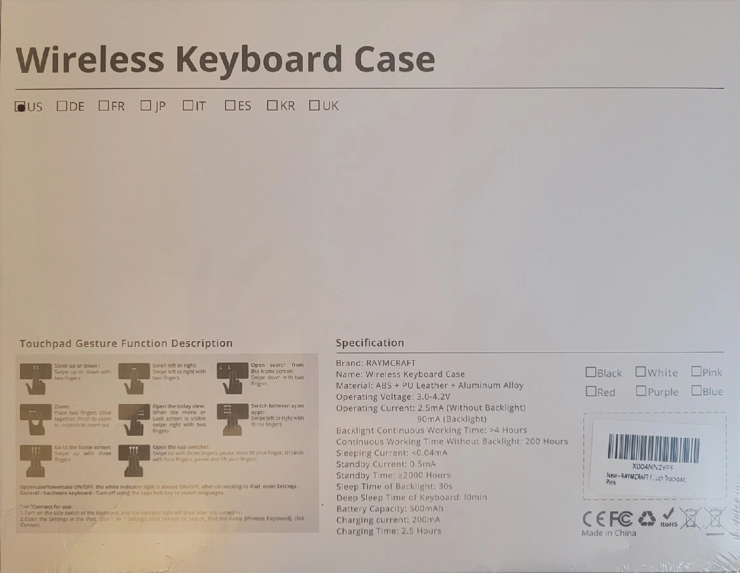 Selling a brand new Raymcraft wireless keyboard case, still in its original packaging! Key features: - Made with ABS + PU Leather and Aluminum Alloy - Operating voltage: 3.0-4.2V - Operating current: 2.5mA (without Backlight), 90mA (Backlight) - Continuous working time: >4 hours without backlight, 200 hours with backlight - Battery capacity: 500mAh Meet at Kipling and Steeles intersection