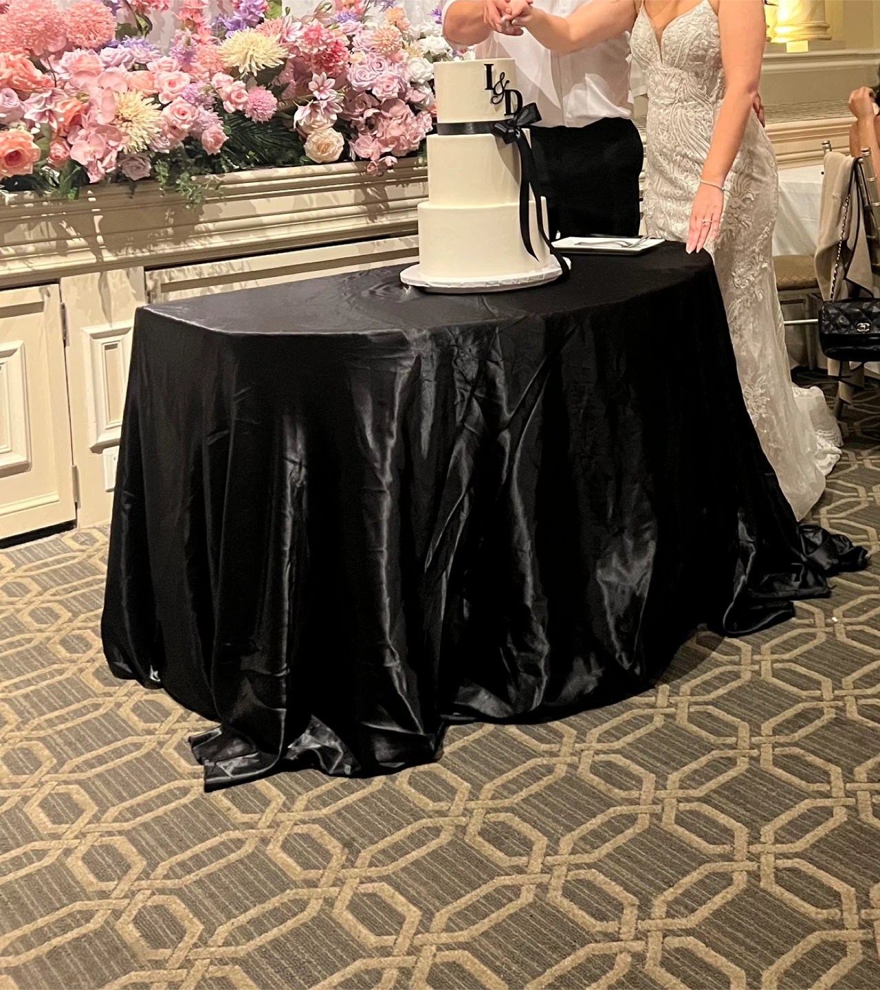 Selling 10 round black tableclothsIt's in great condition and perfect for events or dining! The material is a sleek black satin fabric. Used only once. Freshly washed.$10 each