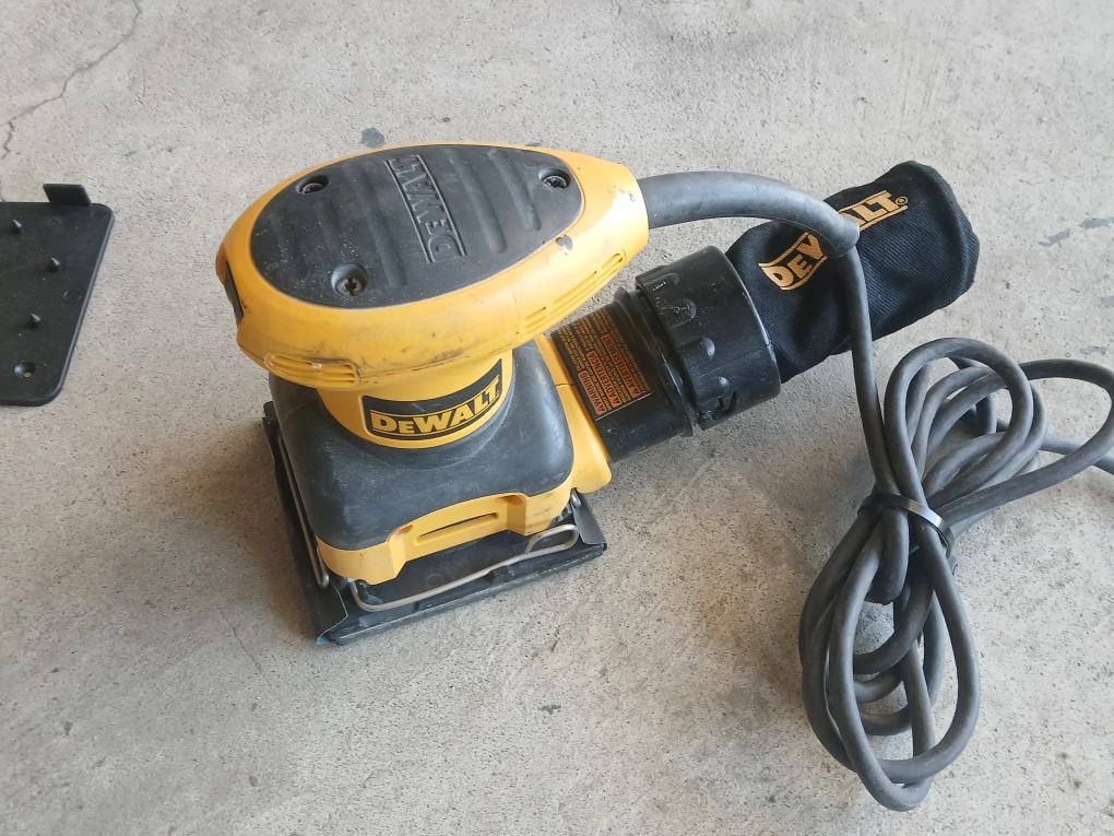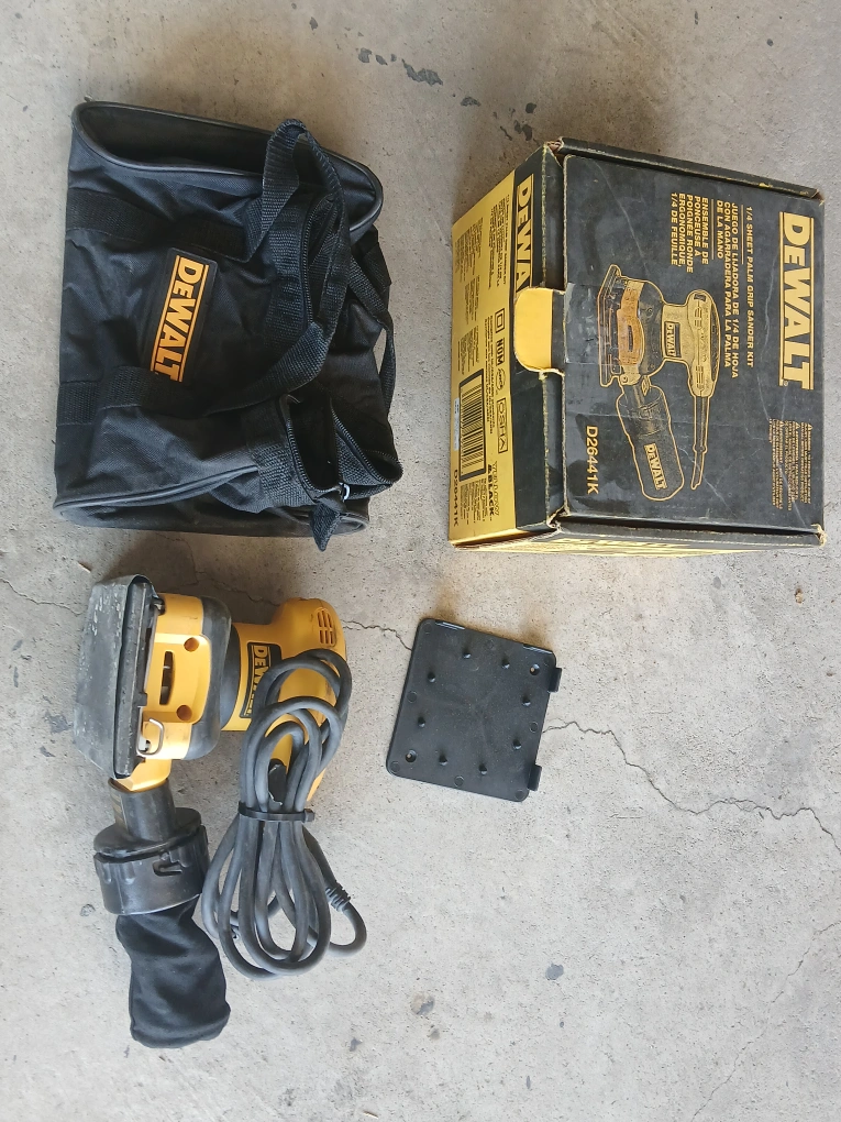 Selling a DeWalt D26441K 1/4 Sheet Palm Grip Sander Kit. It comes with the original box and a carrying bag. Great for sanding projects around the house!