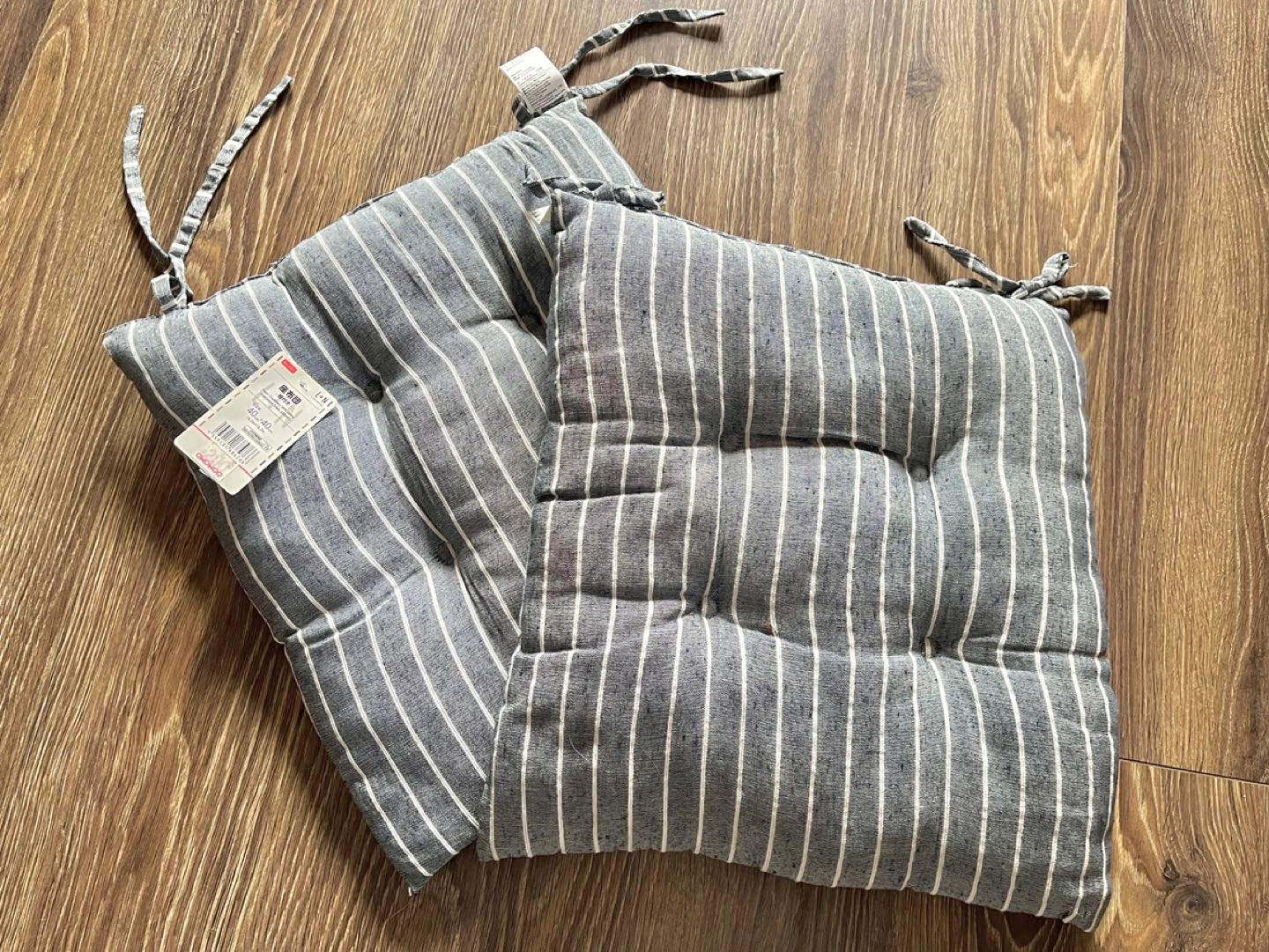 Brand new with tags seat cushions with strings. Larger 40cmx40cm