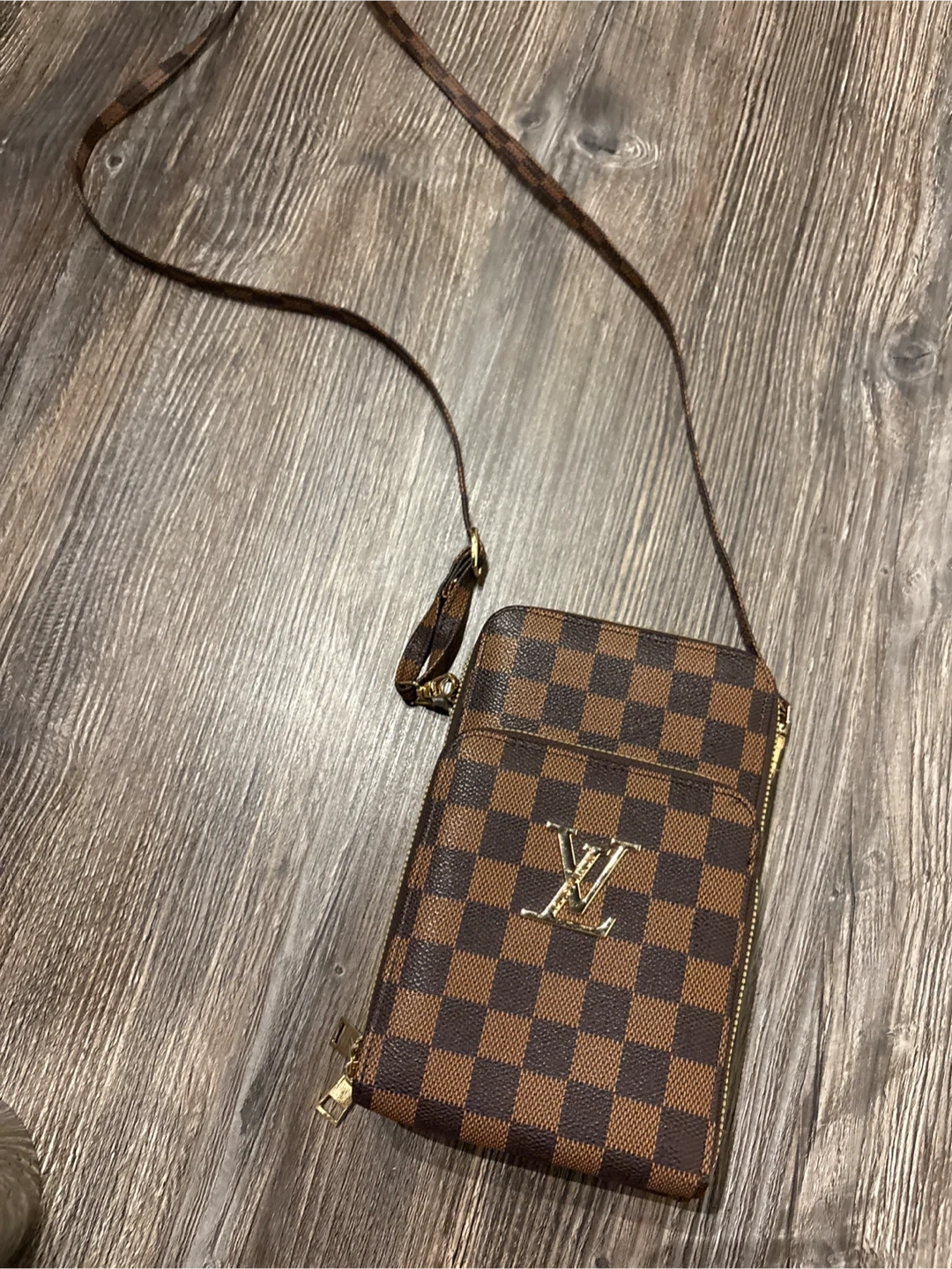 Selling a Louis Vuitton Damier Ebene Phone Box. It's in great condition and features the classic LV monogram. Perfect for carrying your phone and other small essentials!