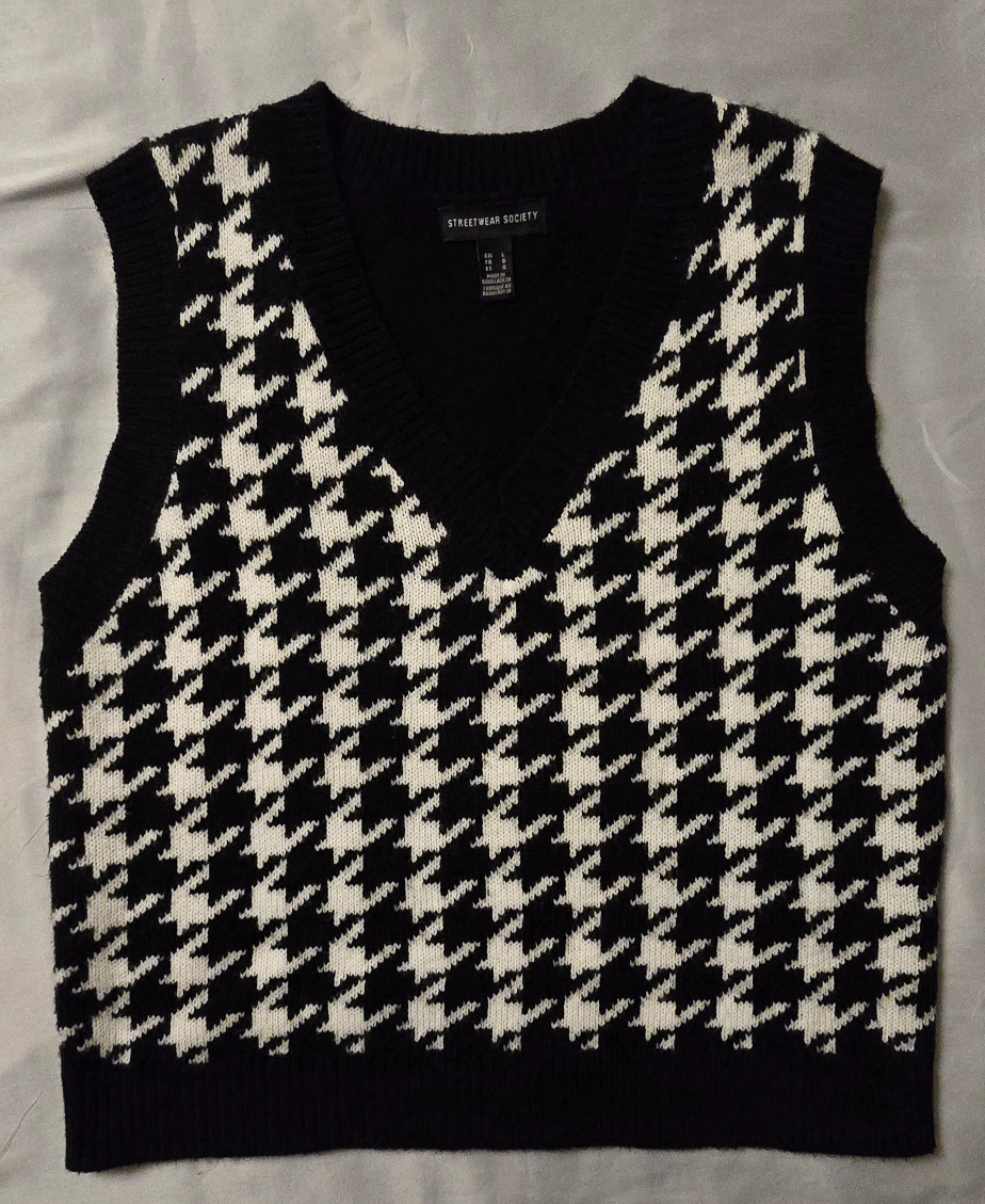 Streetwear Society vest in a classic houndstooth pattern! It's a size large. The vest is black and white, perfect for layering or adding a touch of sophistication to your outfit!
