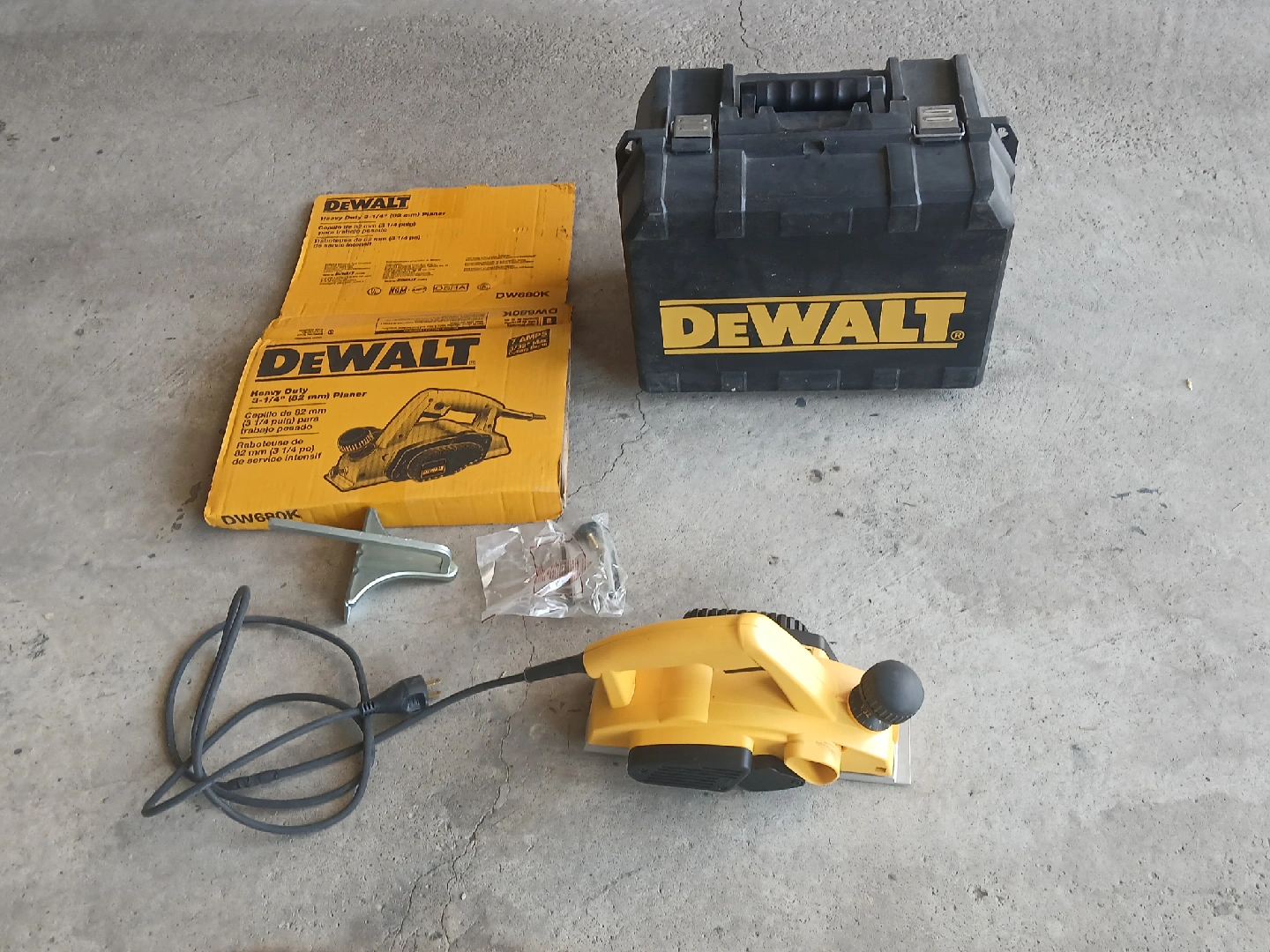 Selling a DeWalt DW680K Heavy-Duty 3-1/4" Wood Planer. It comes with the original box and case, as well as all the included components and accessories. Great for any woodworking projects!