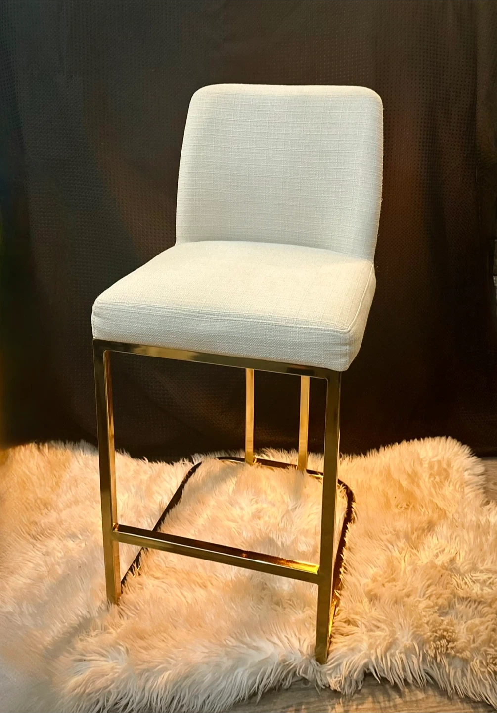 Selling a stylish bar stool featuring a gold frame and a comfortable white seat. This stool would be a great addition to any kitchen or bar area. It's in great condition and ready for a new home