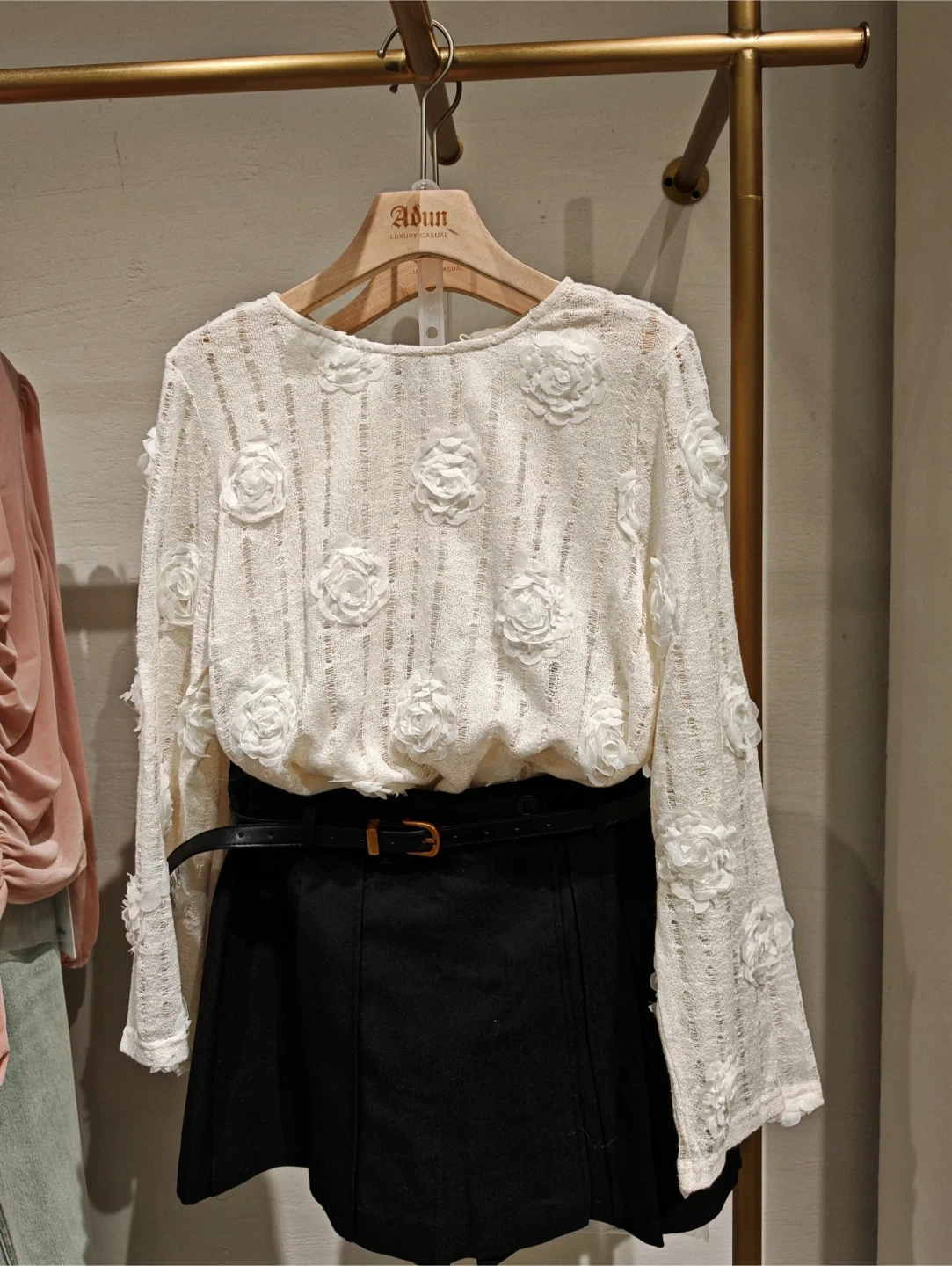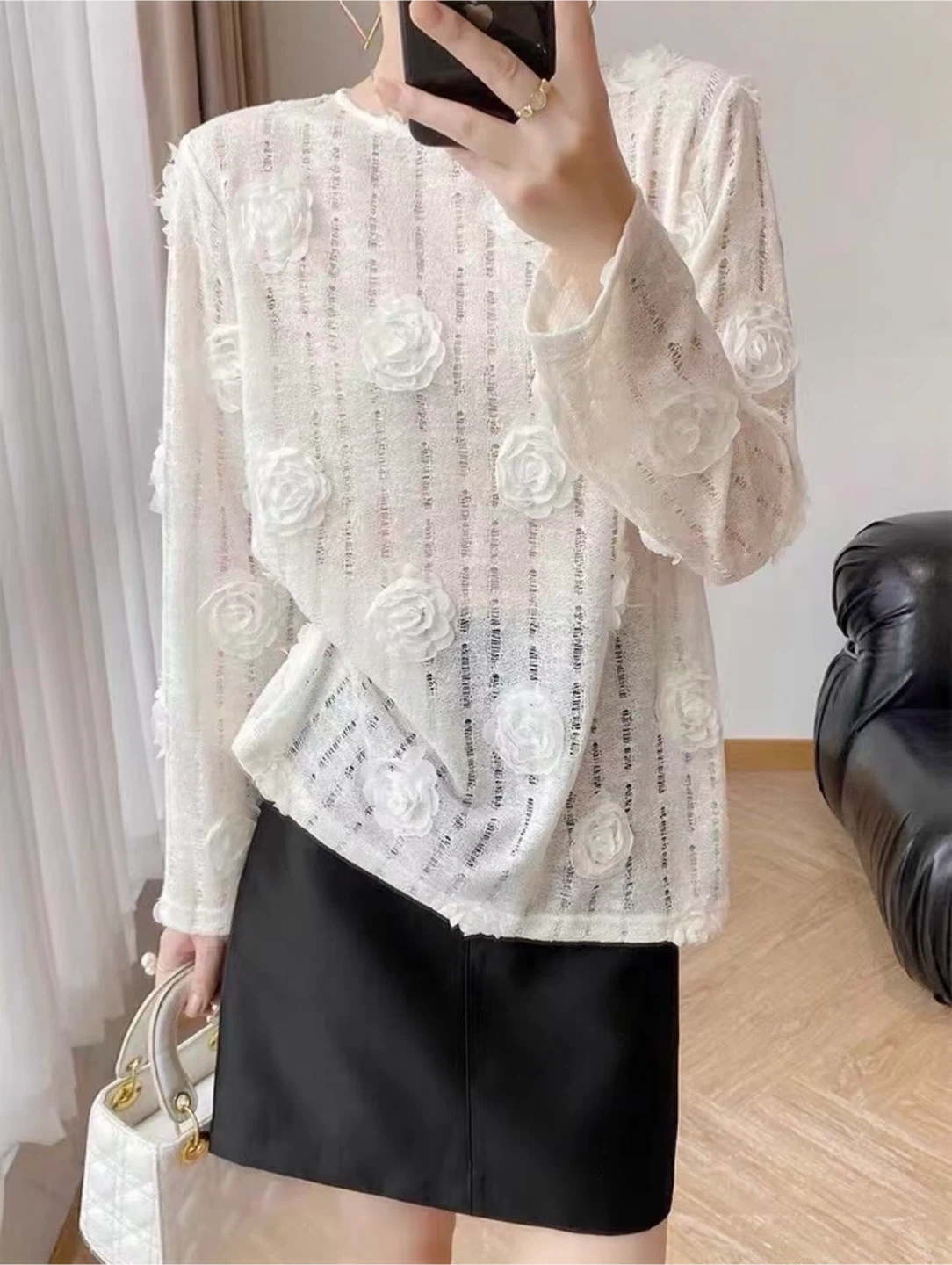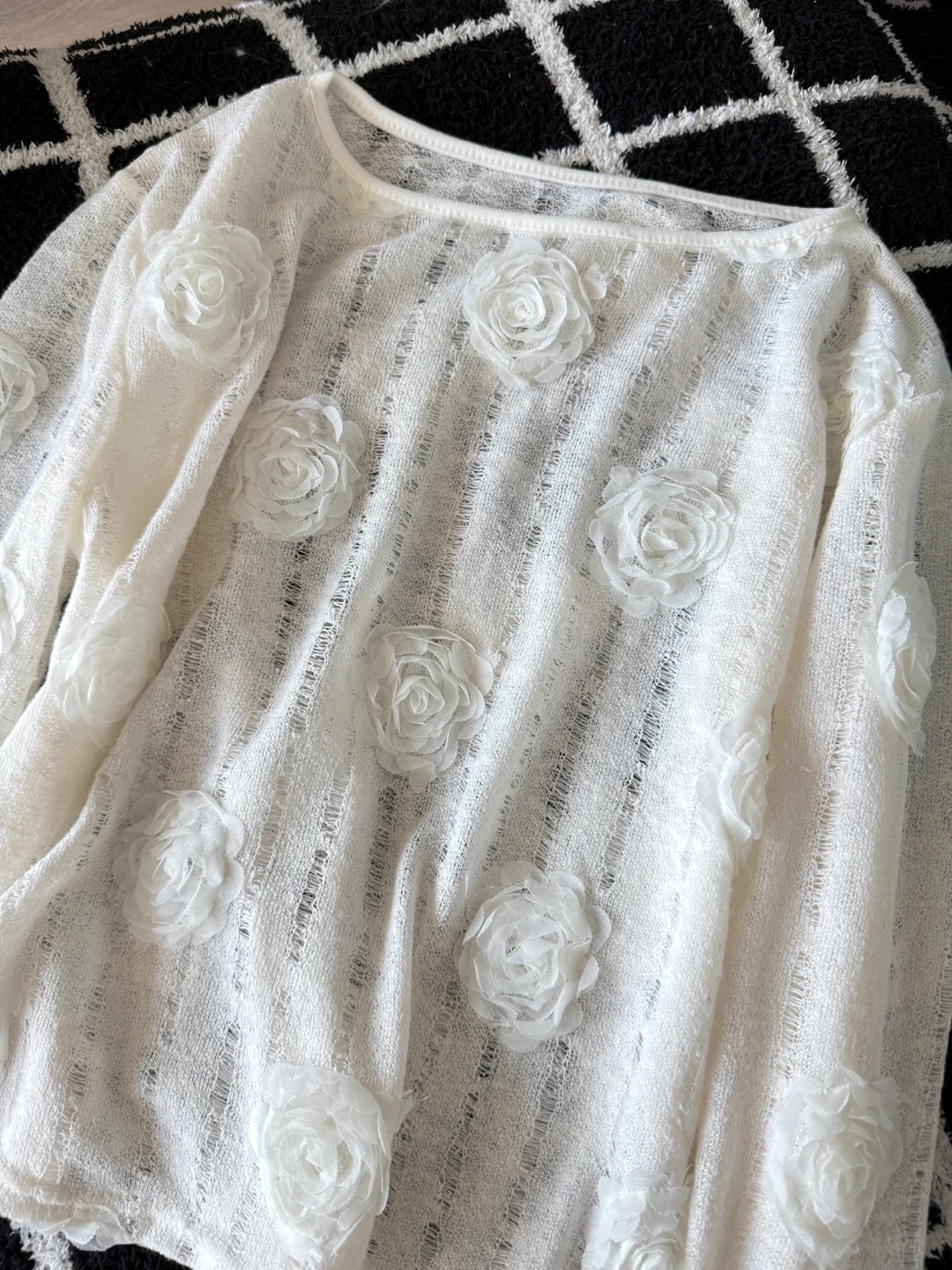 Selling a lovely white long-sleeve top featuring a beautiful floral design! It's new with tag and ready for a new home. The material has a slightly sheer, textured look. Perfect for adding a touch of elegance to any outfit!