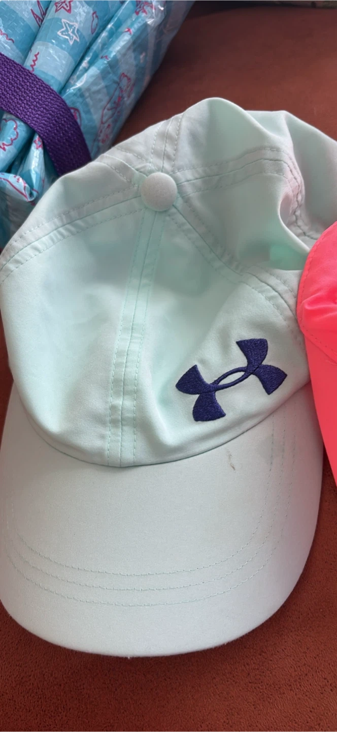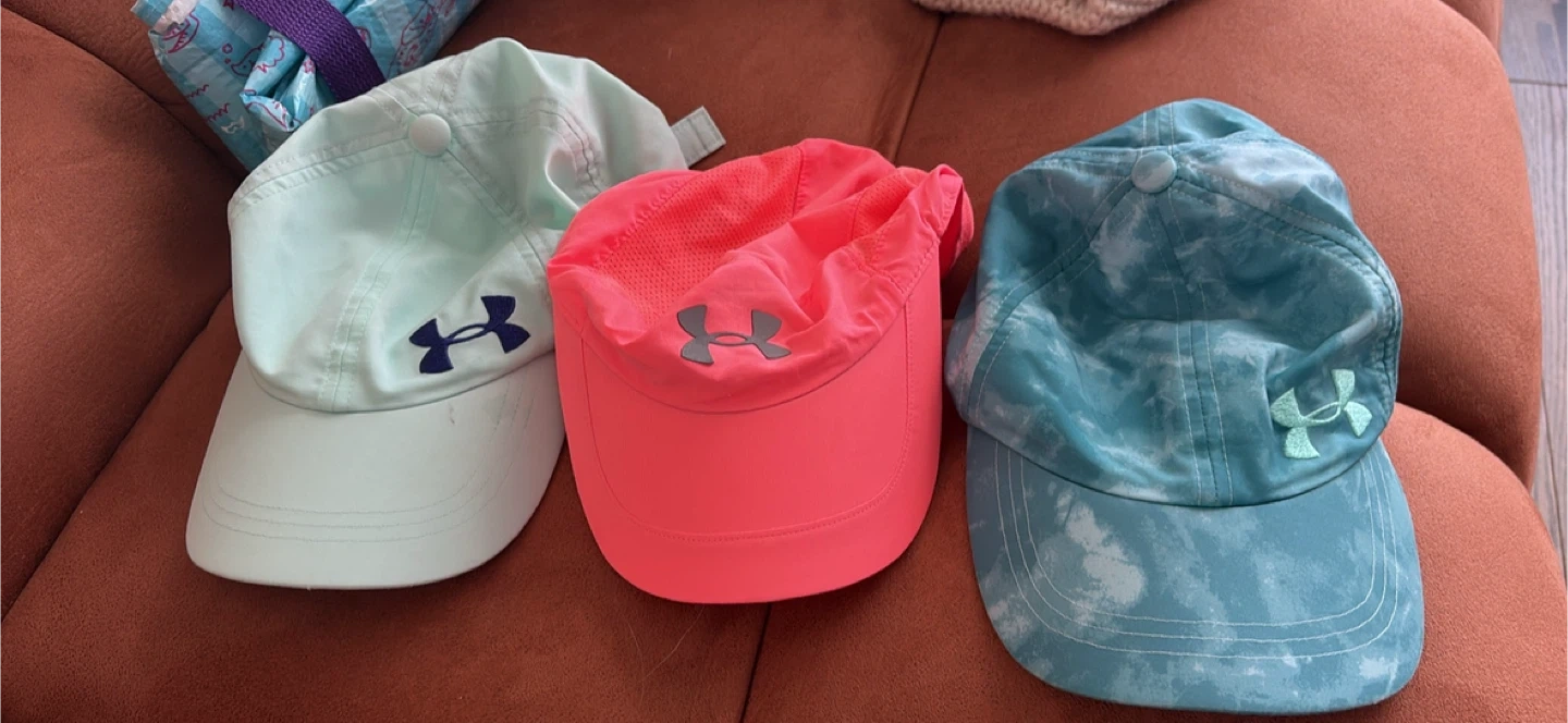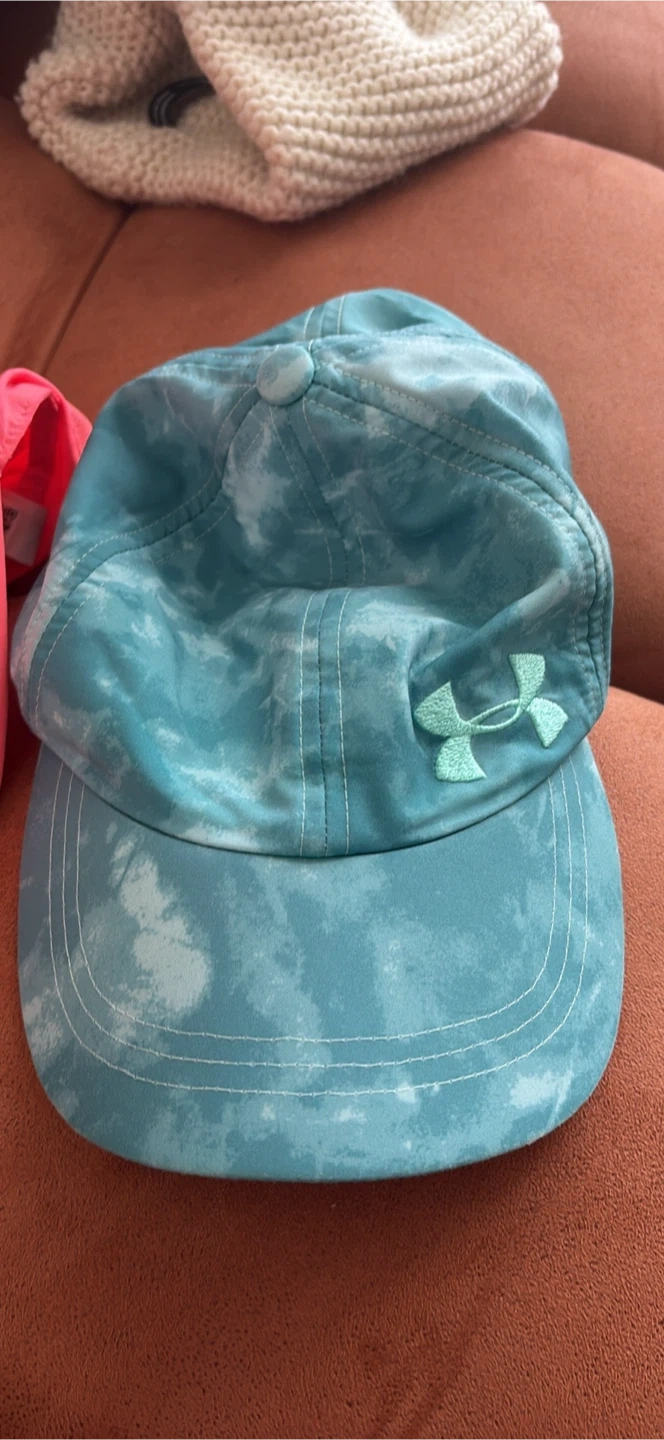 Selling a set of Under Armour Kids hats! There's a pink one, a light blue one, and a teal tie-dye one. All in great condition!