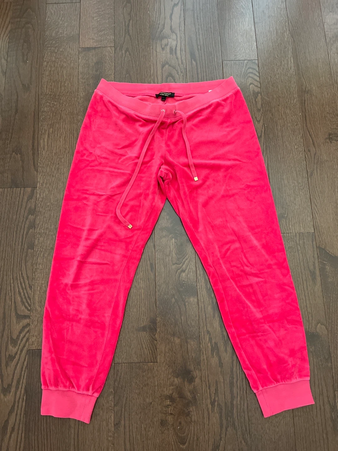 Selling a pair of Juicy Couture velour joggers in a vibrant pink! These are a size large and feature the classic Juicy Couture design with a drawstring waist and back pockets. Meet up or pick up - message if interested