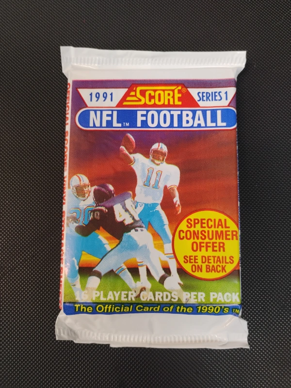 Selling a sealed pack of 1991 Score NFL Football cards, Series 1! This pack contains 16 player cards and is officially licensed. A great piece for any collector!