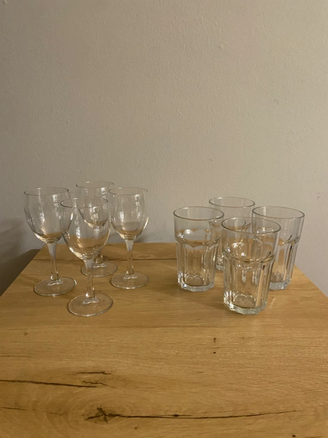 Selling a set of 8 glasses from IKEA! There are 4 wine glasses and 4 water glasses. They're in great condition and ready for a new home! Perfect for everyday use or entertaining.