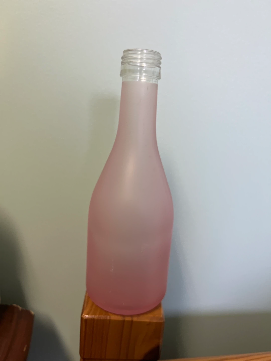 Selling a cute pink frosted glass bottle. It's in great condition and would be perfect for decoration or crafting!