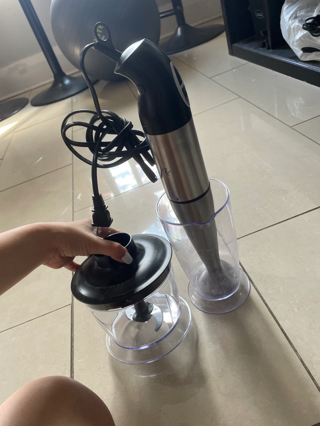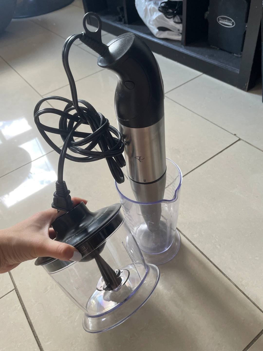 394Selling an immersion hand blender. It comes with the blending wand and a beaker. Perfect for making soups, smoothies, and sauces right in your pot or glass!