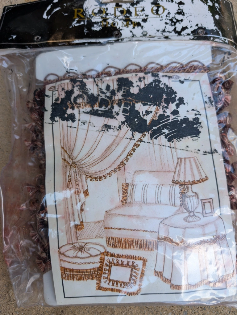 22New in package Rodeo Home trimming, still sealed! It's a decorative trim, perfect for adding a touch of elegance to curtains, cushions, or other home decor projects. The package contains 6 yards of trimming, ready for your creative use