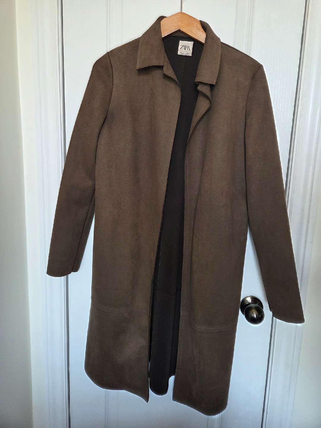 Zara faux suede coat, gently used. Lovely construction, soft yet sturdy. Selling because it doesn't fit me that well anymore. The coat is in great condition and perfect for fall!