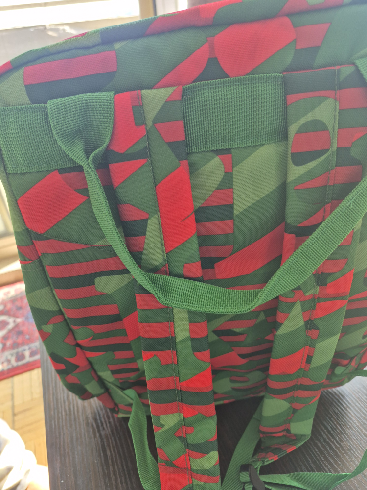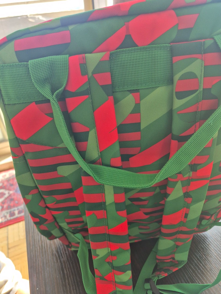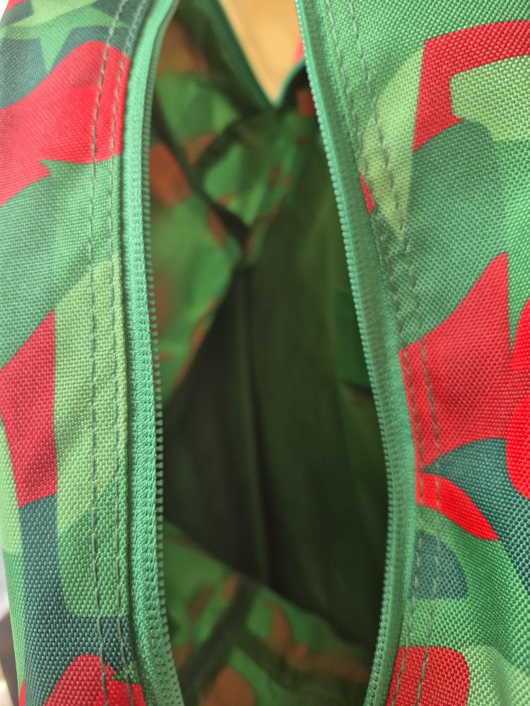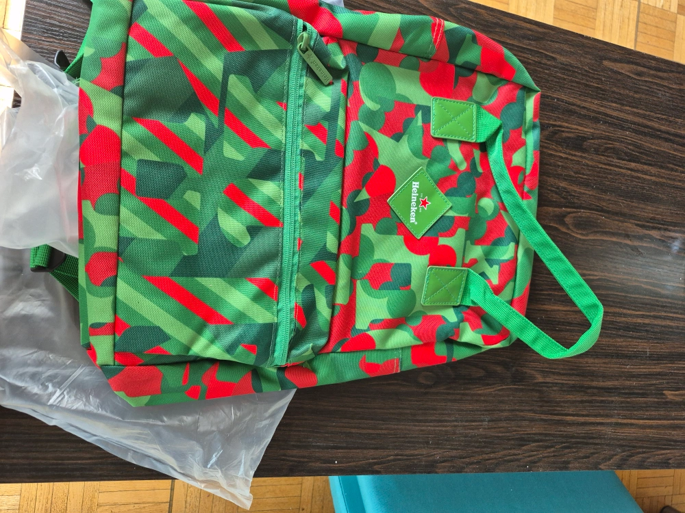 Cool Heineken backpack in a vibrant green and red pattern! It's in great shape and ready for your next adventure. Perfect for carrying books, gym clothes, or whatever you need on the go