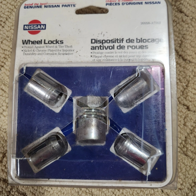 62Selling a set of Nissan Wheel Locks. They protect against wheel and tire theft and are nickel and chrome plated for superior durability and corrosion resistance. The locks are made with through-hardened steel construction and feature triple-nickel chrome plating. Instructions for wheel lock installation & removal contained within the packaging
