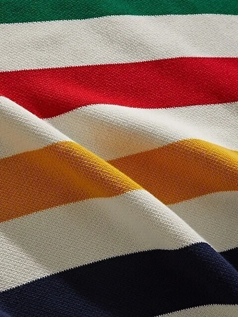 This knit throw is crafted from a soft cotton and features Hudson Bay's classic multi-stripe print.