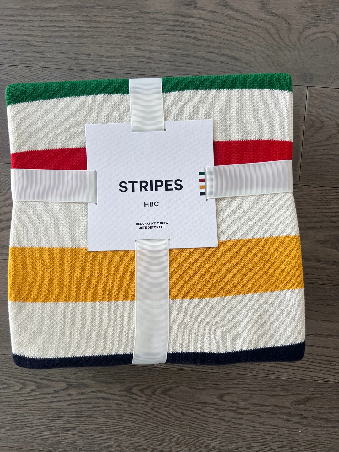 Hudson Bay Company Cotton Knit Throw, Multi-Stripe Blanket