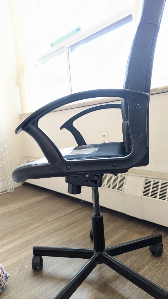 Black office chair. In good condition. Barely used. It has a mesh back and adjustable height. DM for more information. Pickup only.