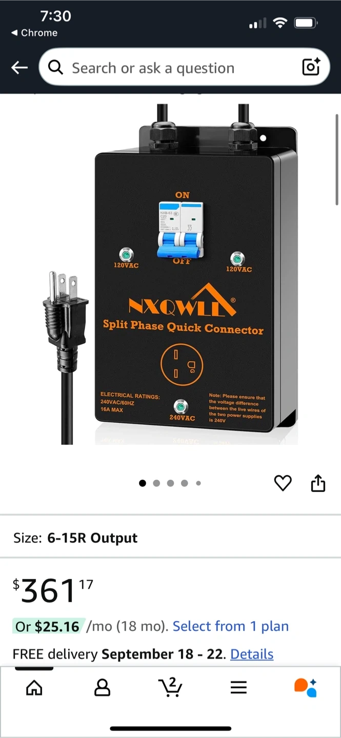 Selling a NXQWLL Split Phase Quick Connector that converts 110V to 220V.