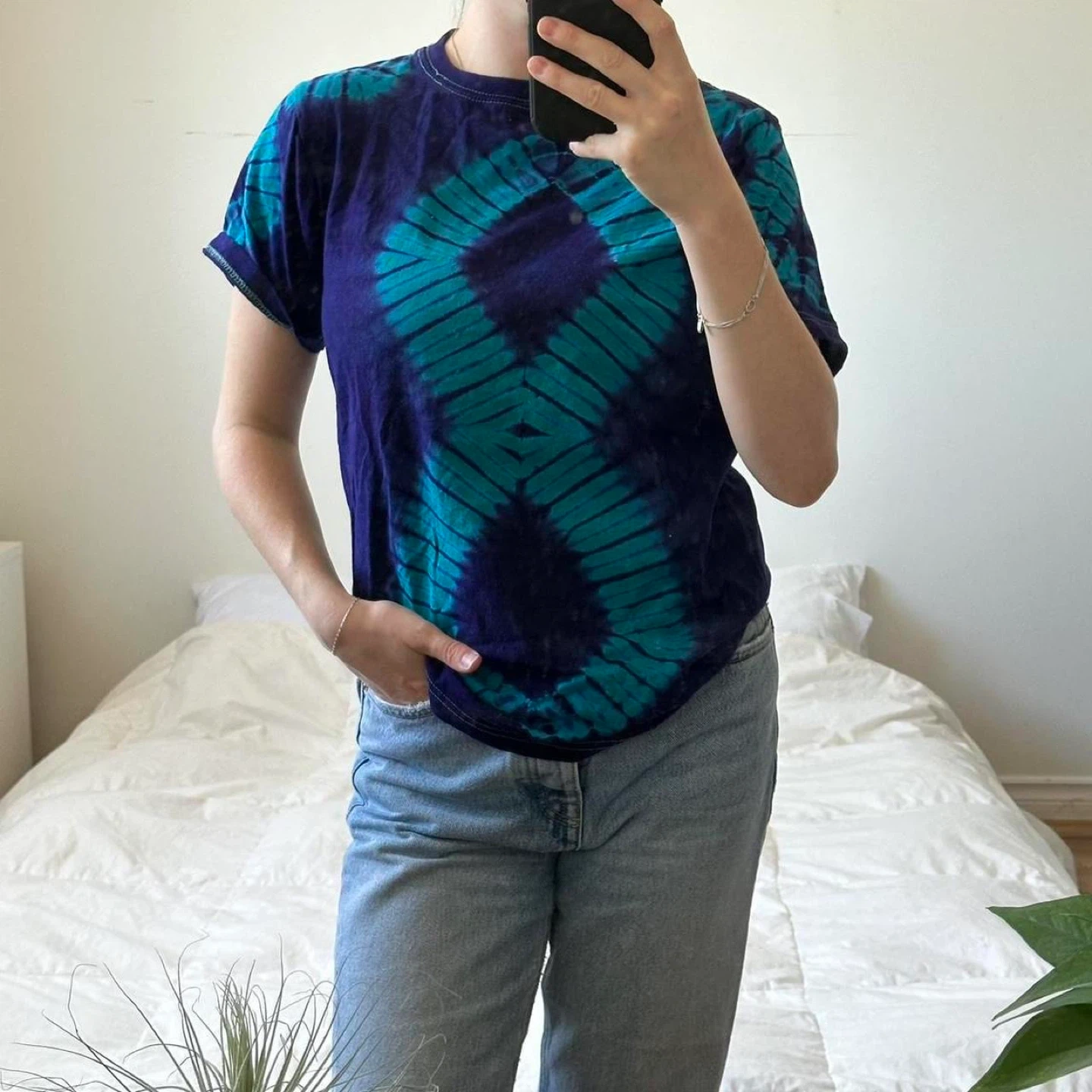 Blue and purple figure eight tie-dye tee