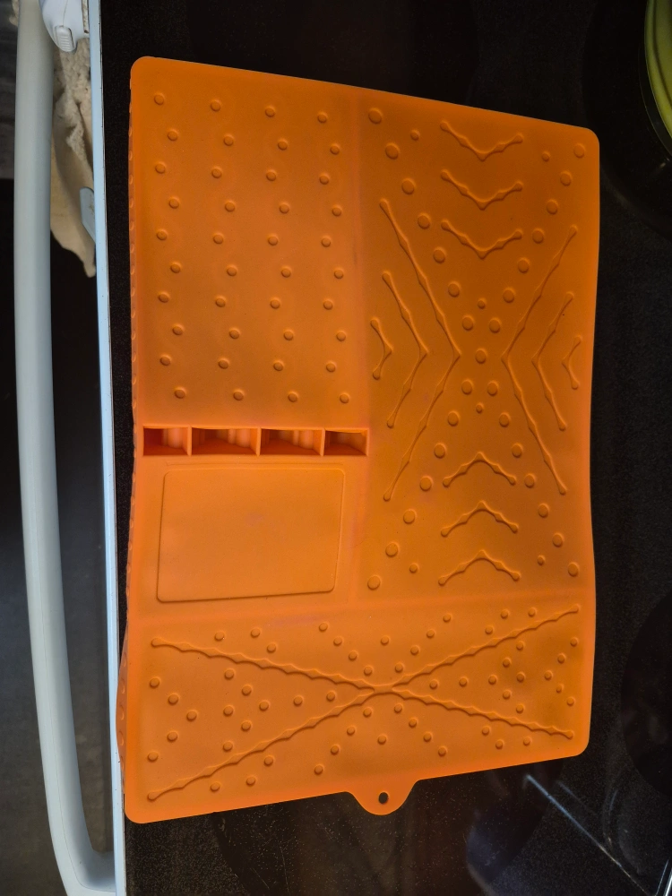 Keep your griddle tools organized with this handy silicone mat! It's brand new and ready to help you keep your outdoor kitchen tidy. Missed return window paid $16.99 plus tax.