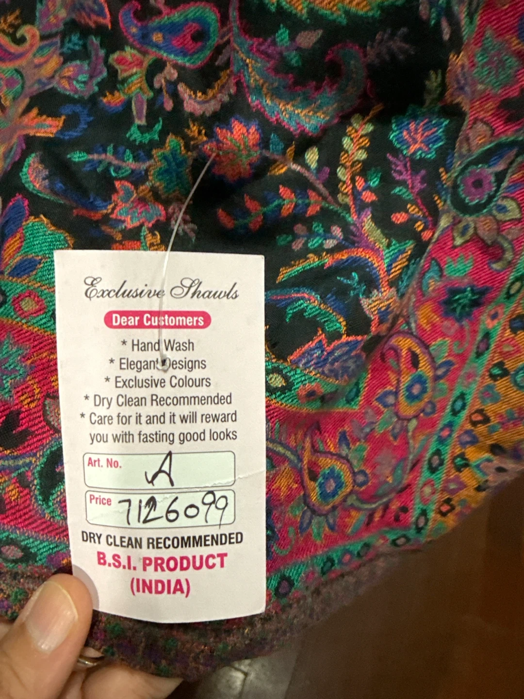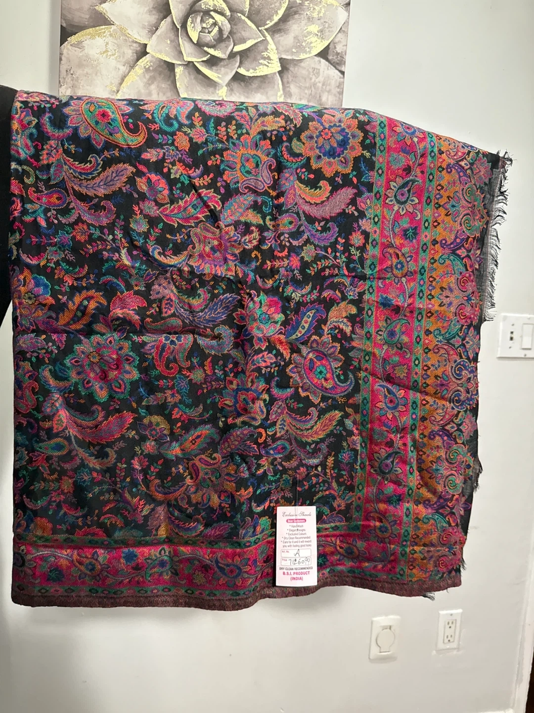 75This is a beautiful Exclusive Shawls with a vibrant paisley pattern. It features elegant designs and exclusive colours. It's recommended to dry clean this item to keep it looking its best