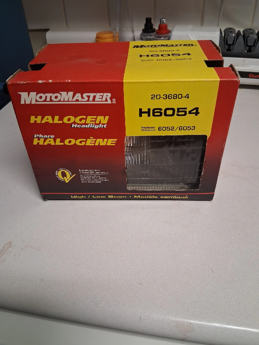 Selling a brand new MotoMaster H6054 Halogen Headlight still in its original packaging! It's a high/low beam model. Replaces 6052/6053 brand new still in the box message 780-232-1282