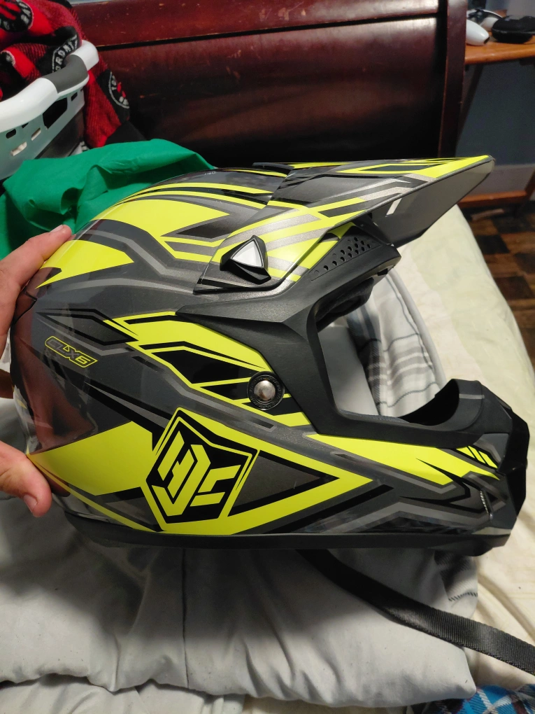 Selling a used HJC CL-X6 off-road helmet. It's in great shape and ready for your next adventure! The helmet features a striking yellow and gray design. size m