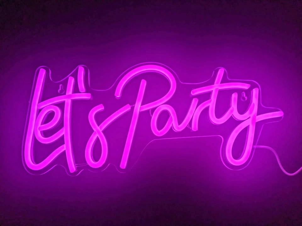 82Selling Neon Let's Party in kosign. Size: approx. 7 inches x 13 inches (see pics) Power: USB (see pic)
