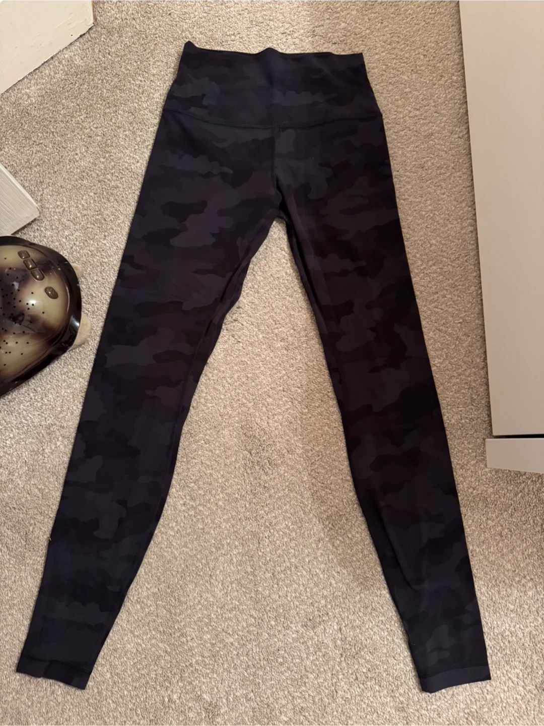 Selling a pair of Lululemon Align leggings in a camo pattern! They are a size 6 and in great condition.