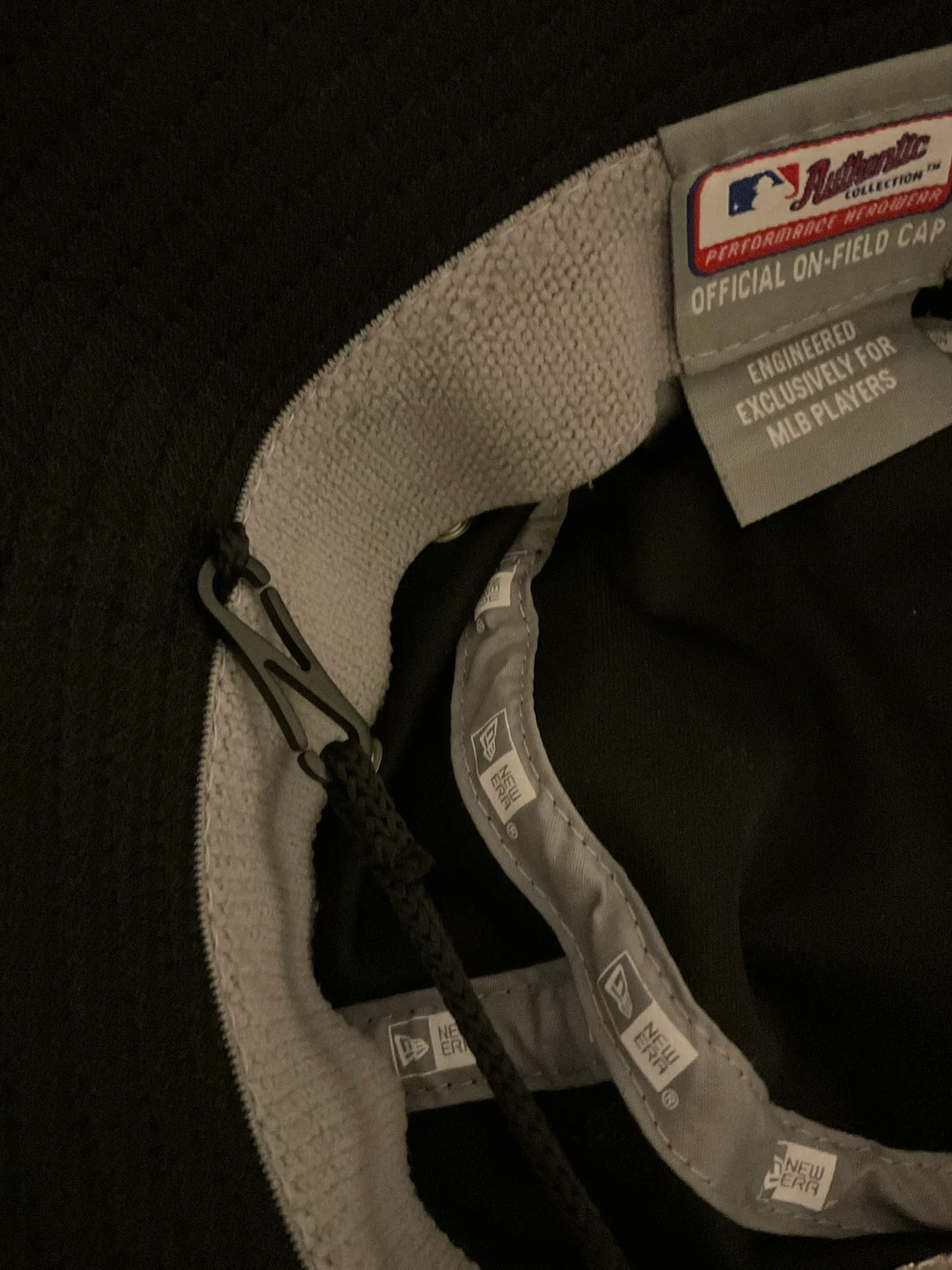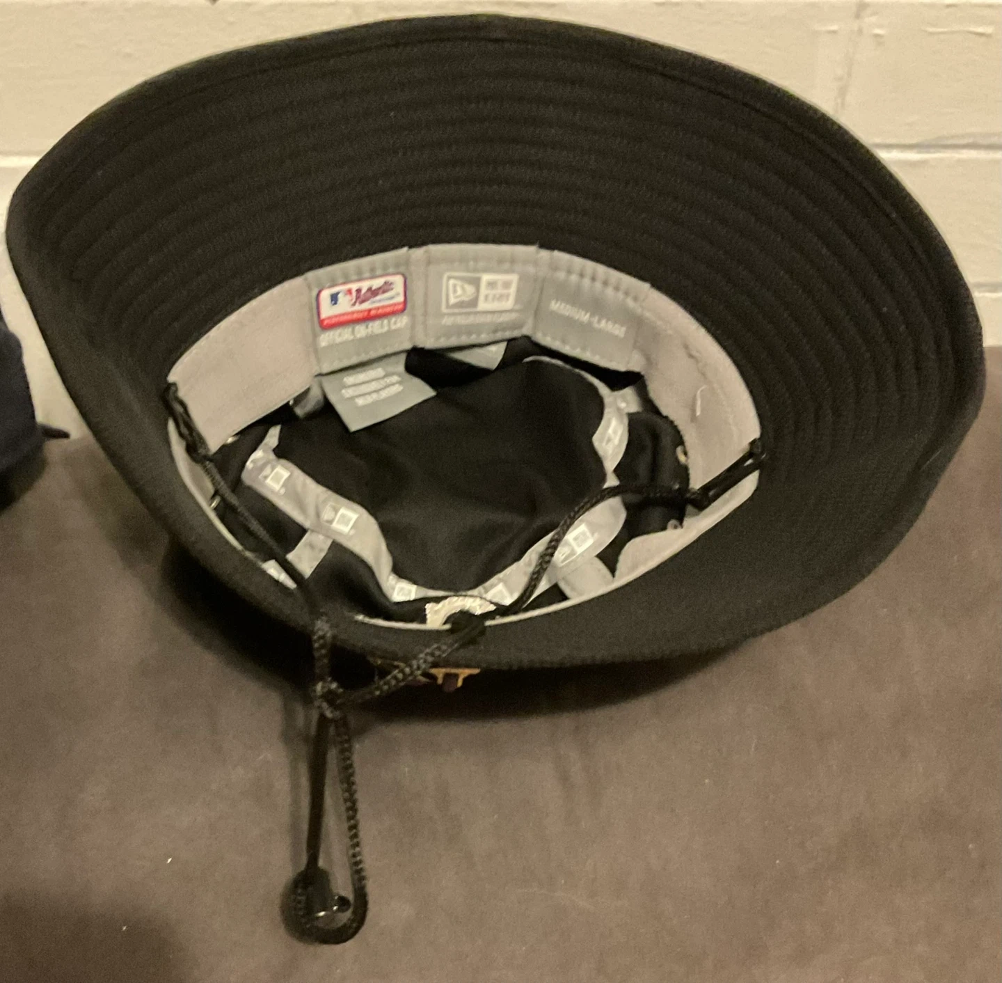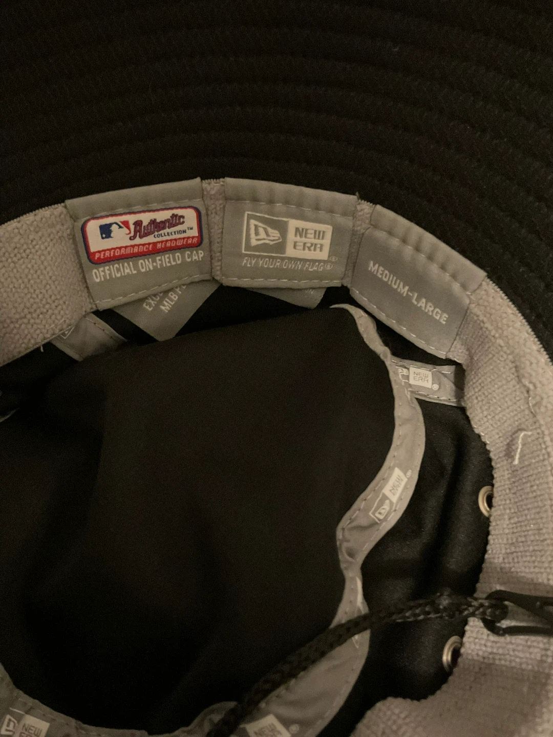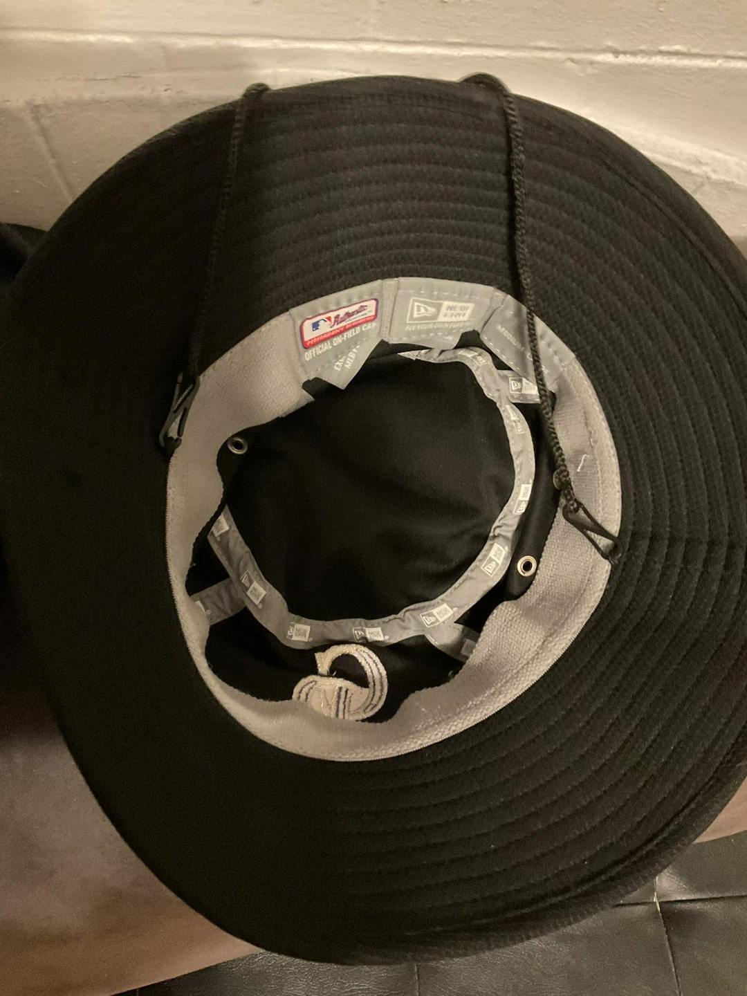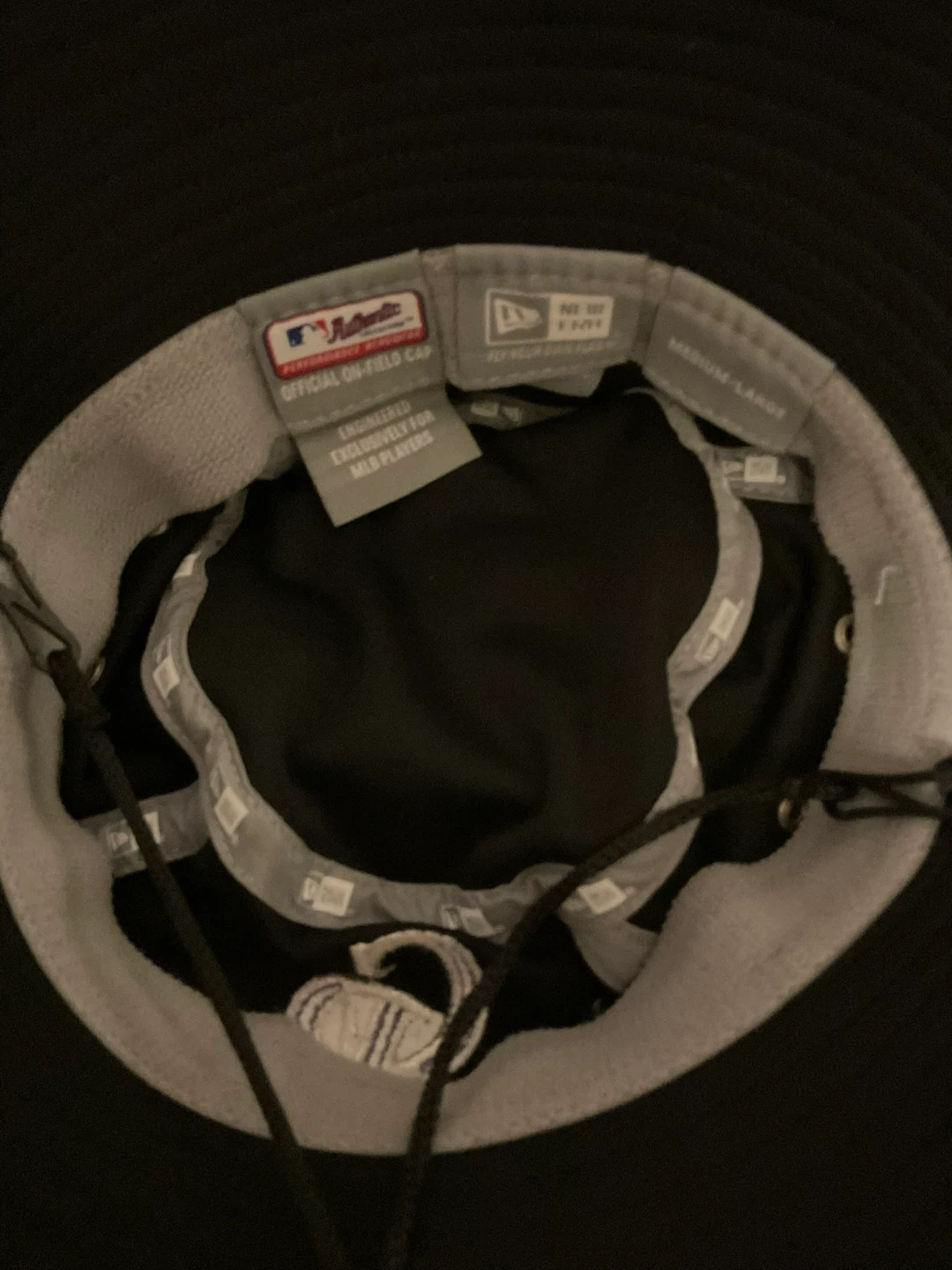 Selling a New Era MLB Colorado Rockies bucket hat. It's black with a purple Rockies logo. Size is Medium/Large. It features a drawstring and is in great condition!