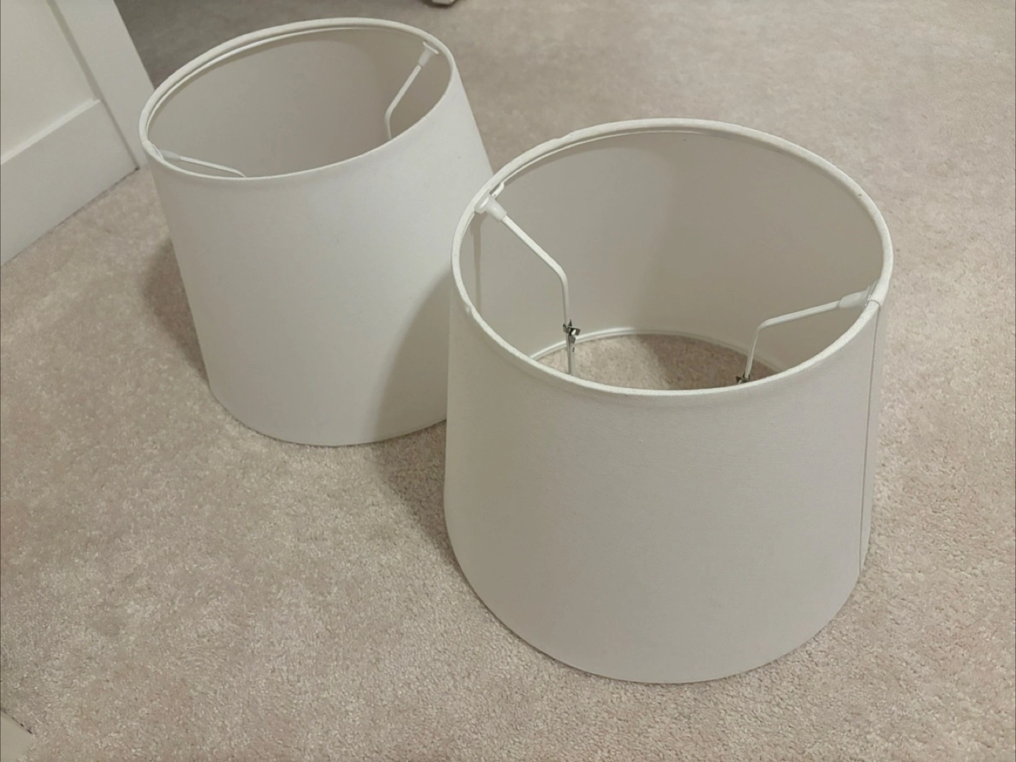 Selling a pair of simple white lamp shades Swedish style. They're in great shape and ready to brighten up your space! Perfect for a bedside lamp or a small table lamp. The neutral colour ensures they'll fit right in with any decor