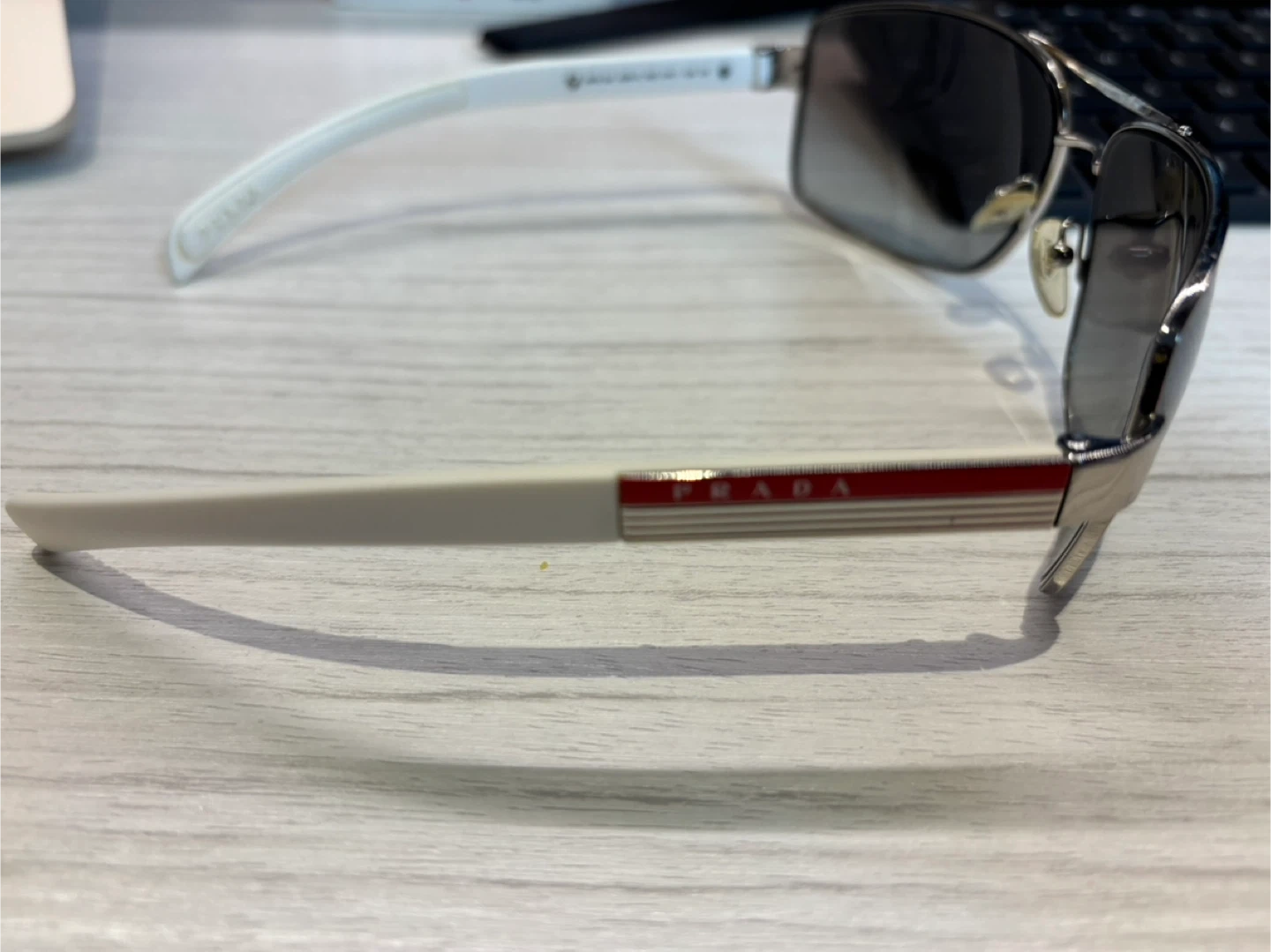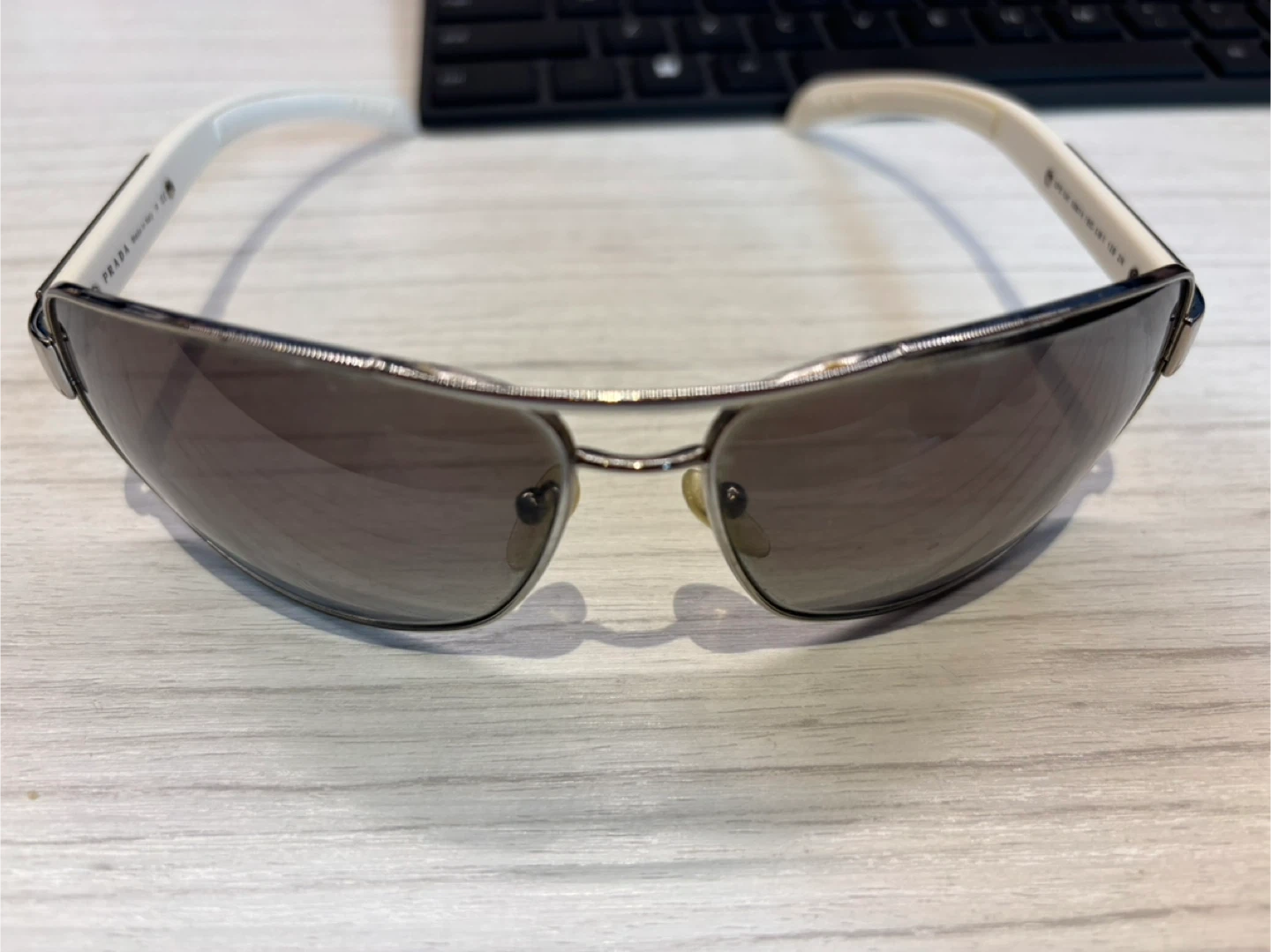 65Selling a pair of Prada sunglasses. They are in great condition and ready for a new owner! The sunglasses have a stylish design with the Prada logo on the side.