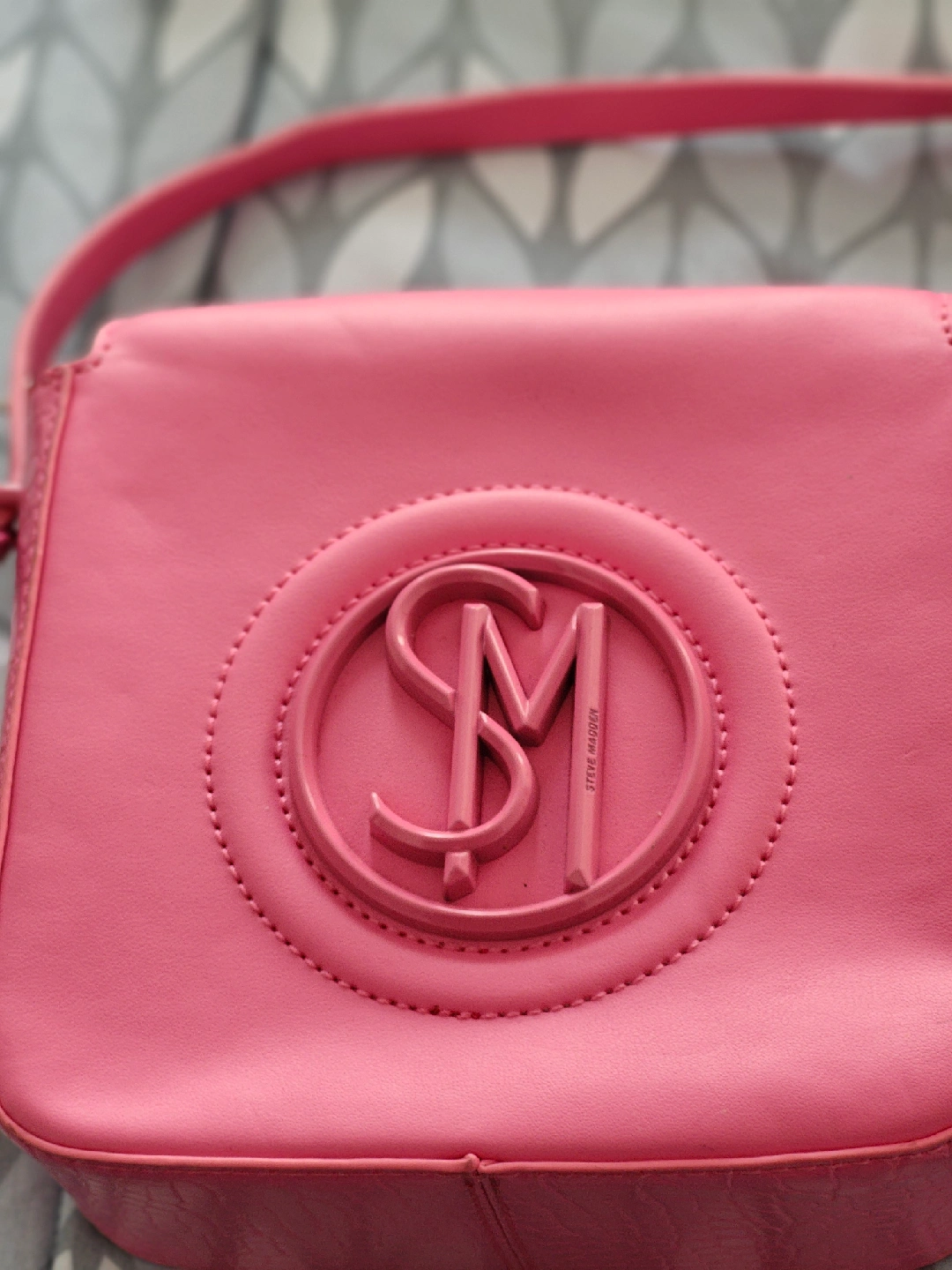 1000+Selling a cute Steve Madden crossbody bag in pink! It's in great condition and perfect for adding a pop of colour to any outfit. The bag has a unique texture and the signature Steve Madden logo. Feel free to ask if you have any questions!
